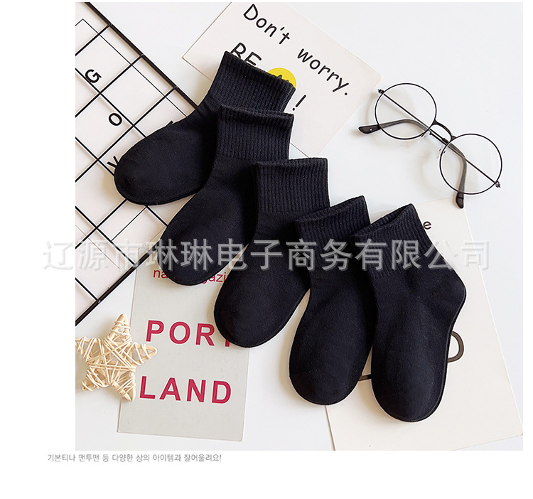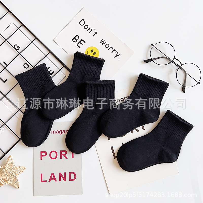 사랑의 진드기 어린이 양말 제조 업체 도매 재고 한국판 대학 스타일 스포츠 학생 순수한 검은 아기 튜브 양말