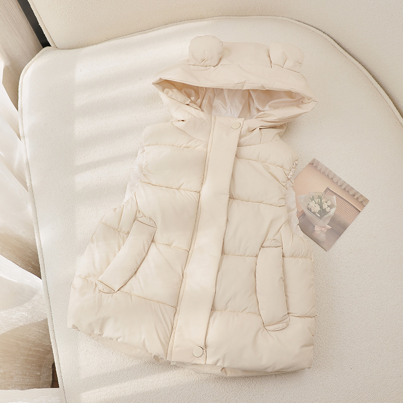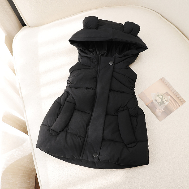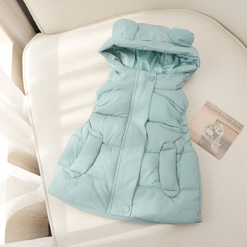 가을 겨울 소년 소녀용 아동용 후드 조끼, 다운 면 유치원복, 아기 귀 조끼 및 양복 조끼스토어 가기