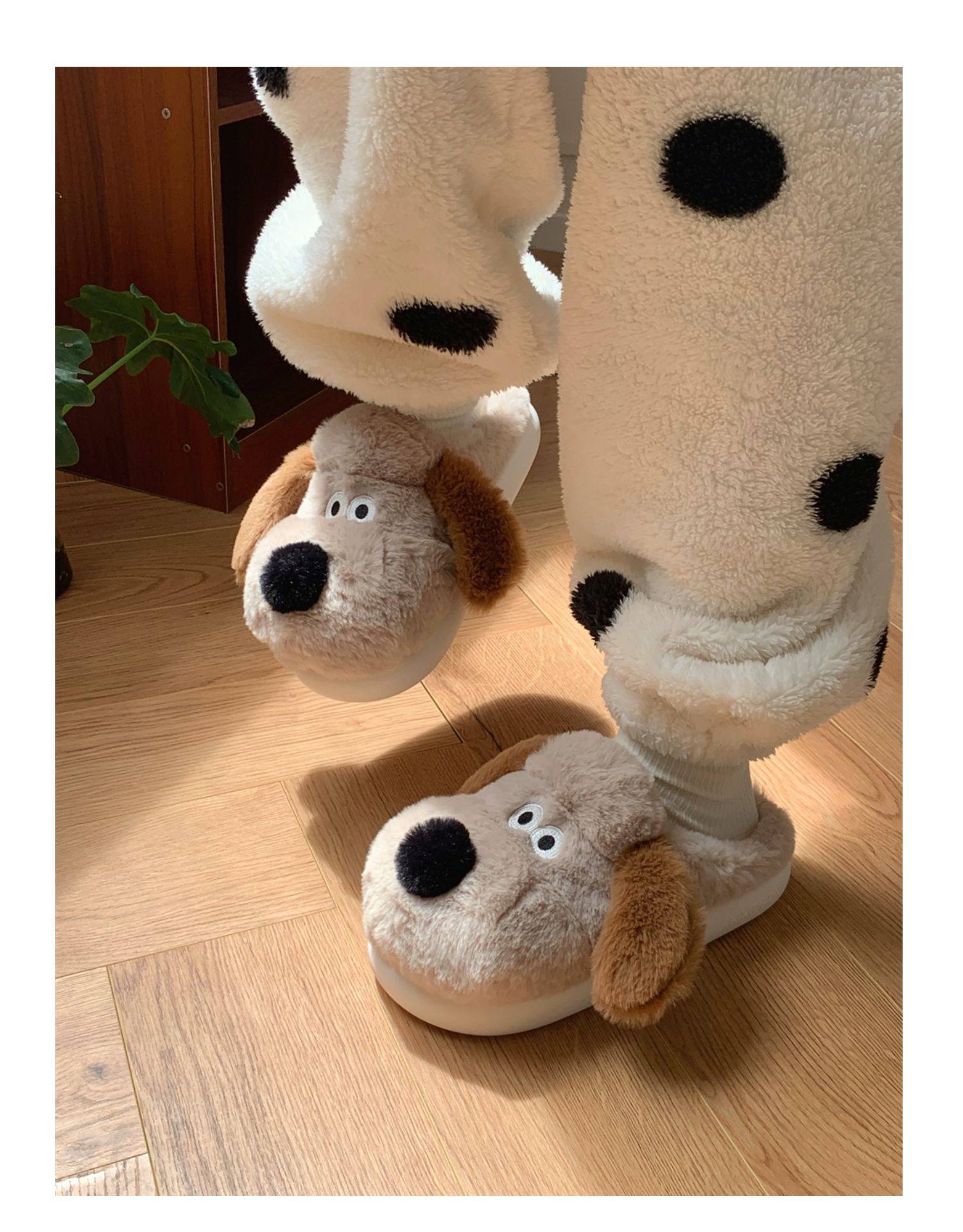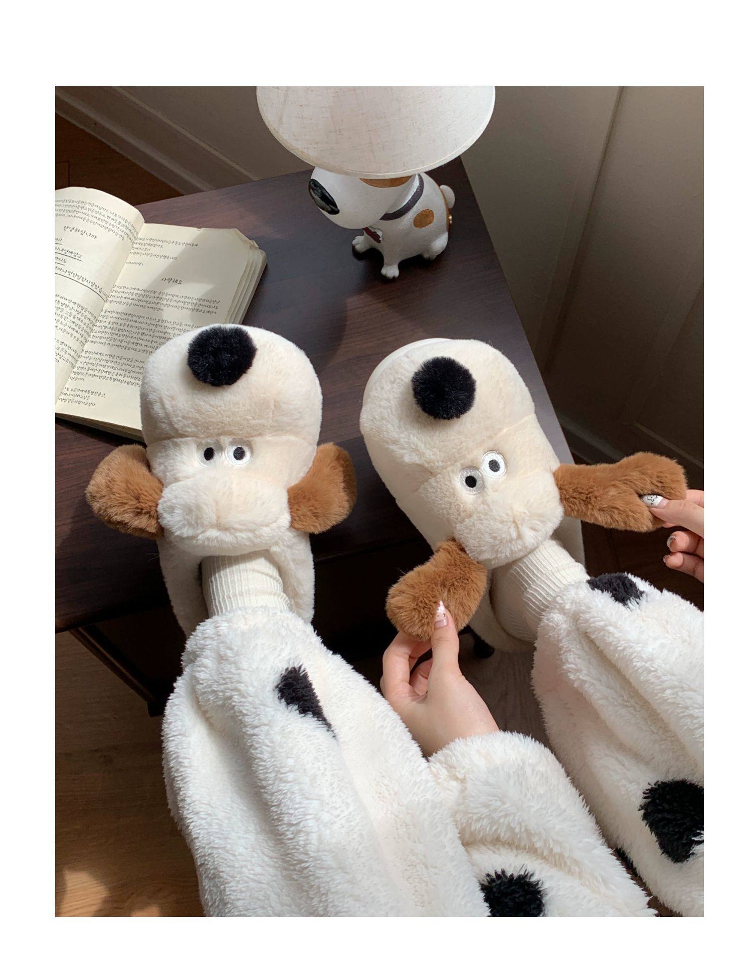 가을, 겨울 집 따뜻한 침실 부드러운 밑창 감금 신발 여성을위한 새로운 정품 보스 개 플러시 발가락 면화 슬리퍼