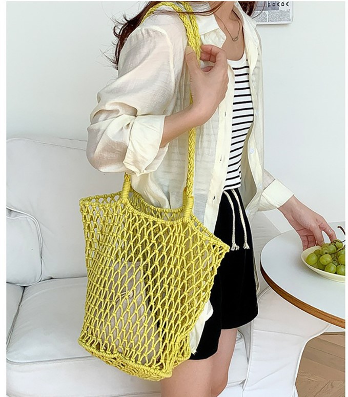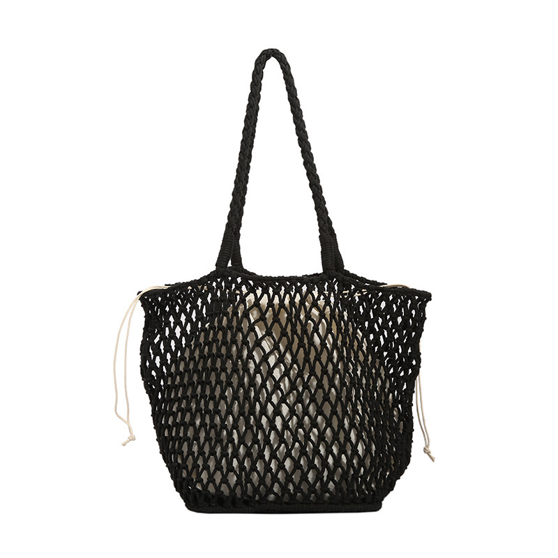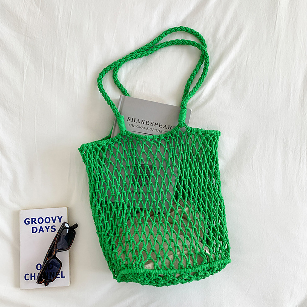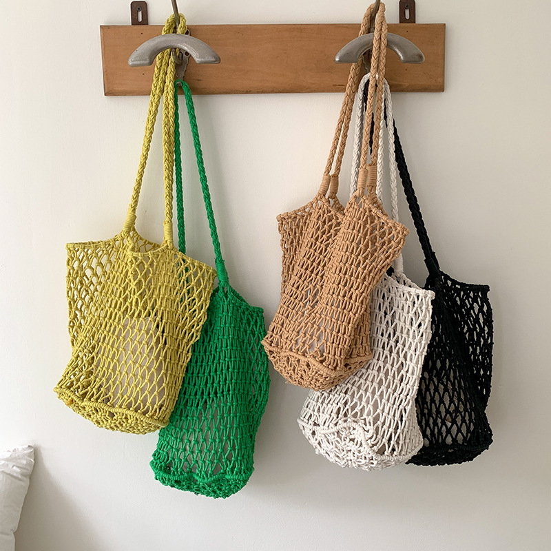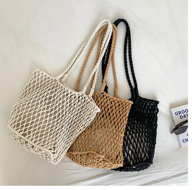 대용량 토트백 수제 가방 면 로프 중공 그물 가방 해변 휴가 가방 짠 그물 가방 밀짚 짠 가방