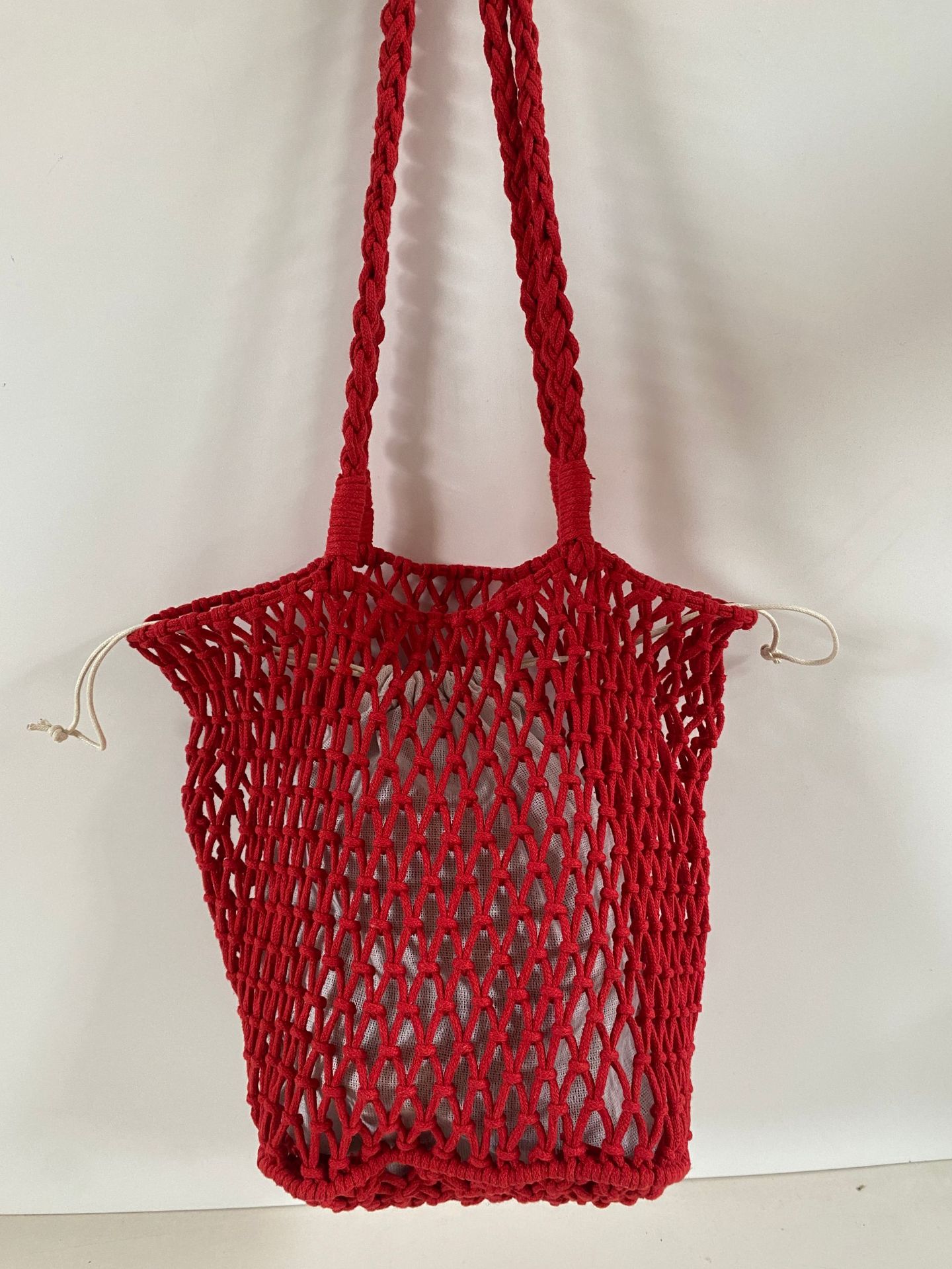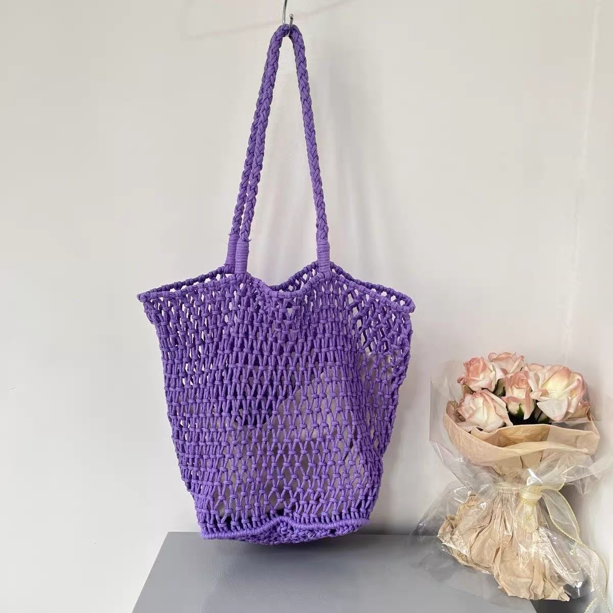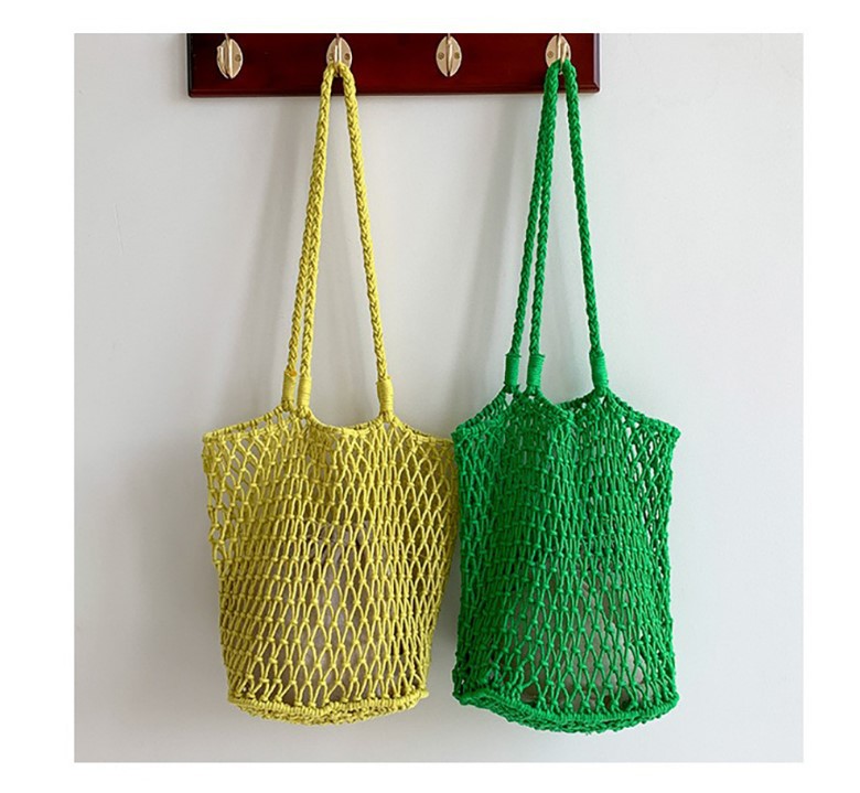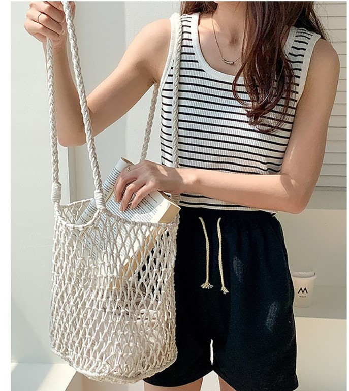 대용량 토트백 수제 가방 면 로프 중공 그물 가방 해변 휴가 가방 짠 그물 가방 밀짚 짠 가방