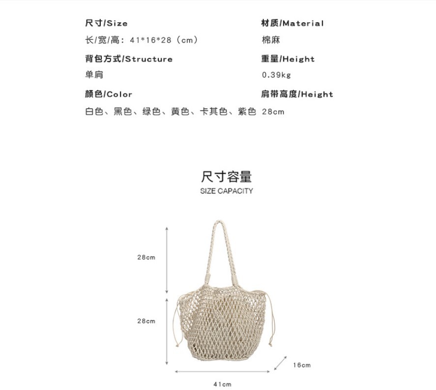 대용량 토트백 수제 가방 면 로프 중공 그물 가방 해변 휴가 가방 짠 그물 가방 밀짚 짠 가방스토어 가기