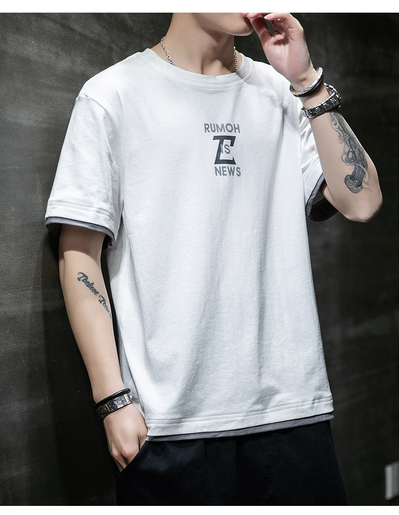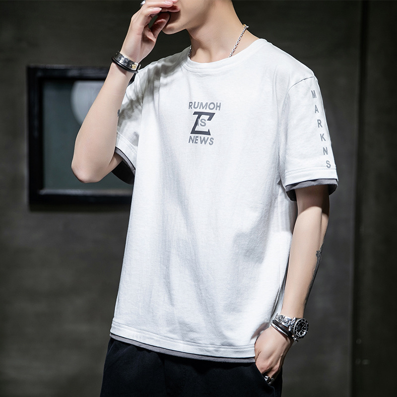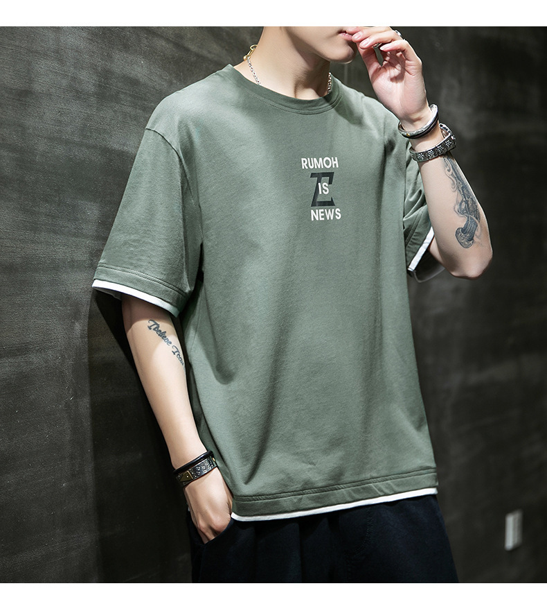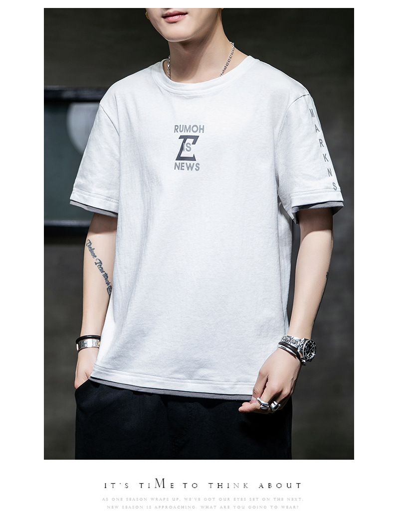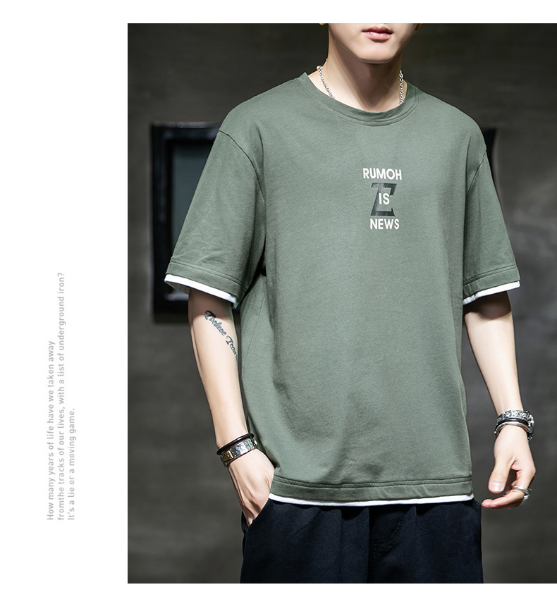 2023 신상 여름 반팔 티셔츠 남성 캐주얼 올매치 루즈한 트렌디 브랜드 프린트 남성용 학생 여름옷