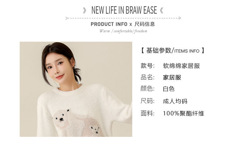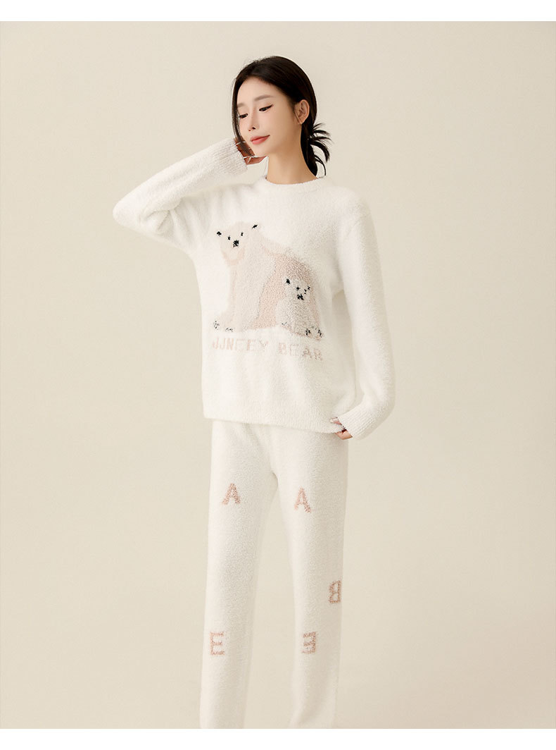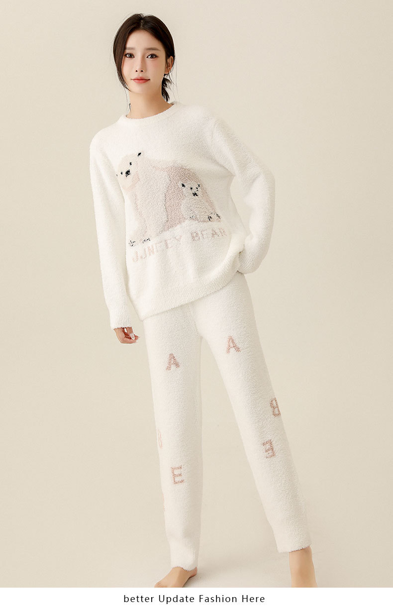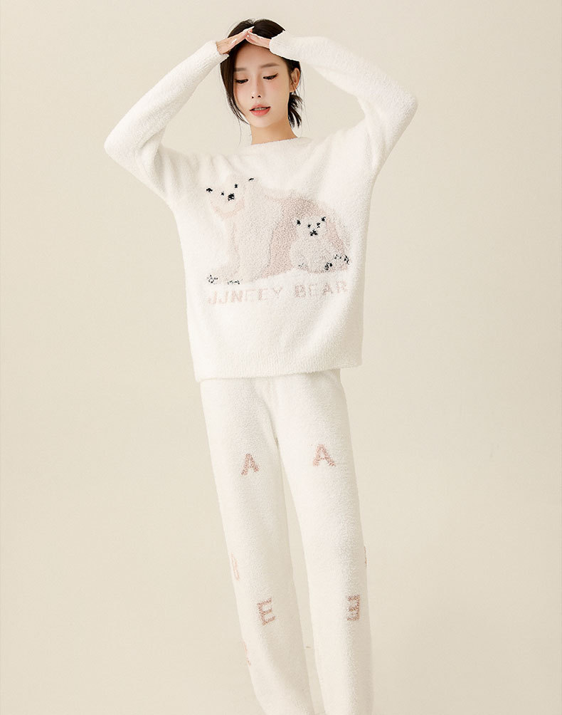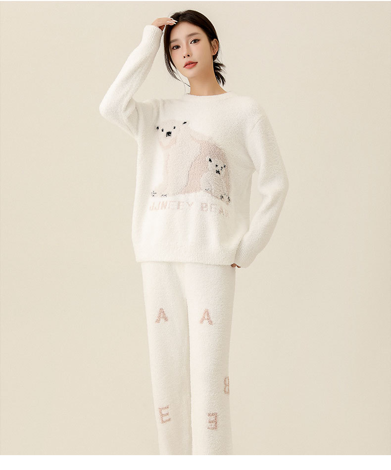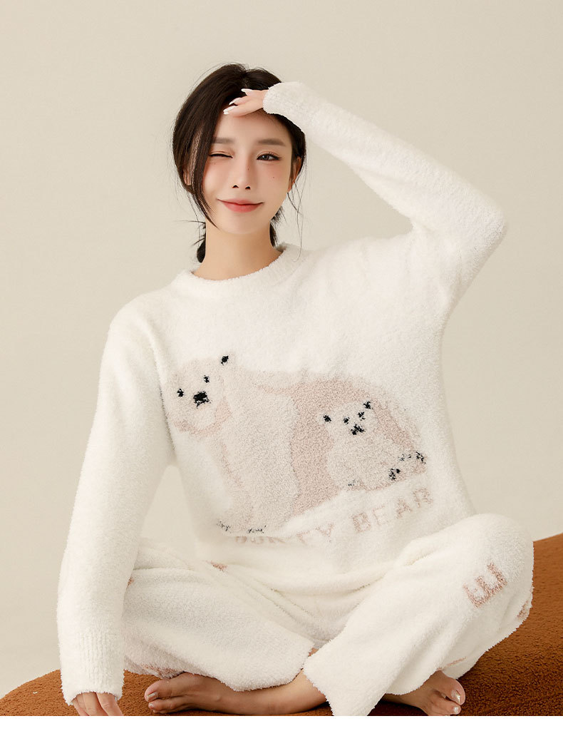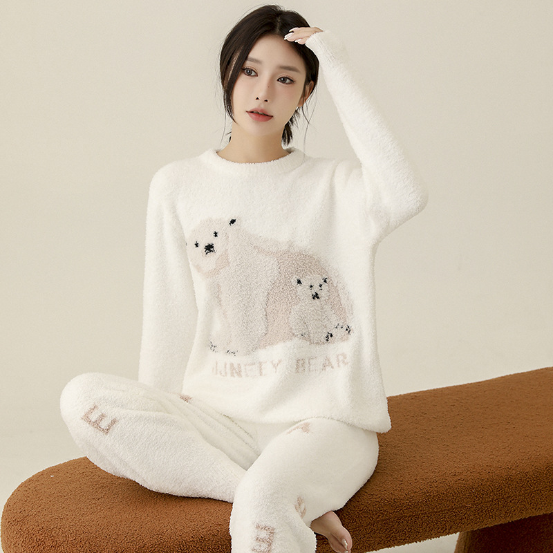 일본식 부드러운 반쪽 벨벳 따뜻한 두꺼운 가을과 겨울 잠옷 여자의 만화 북극곰 겨울 가정 옷 세트스토어 가기