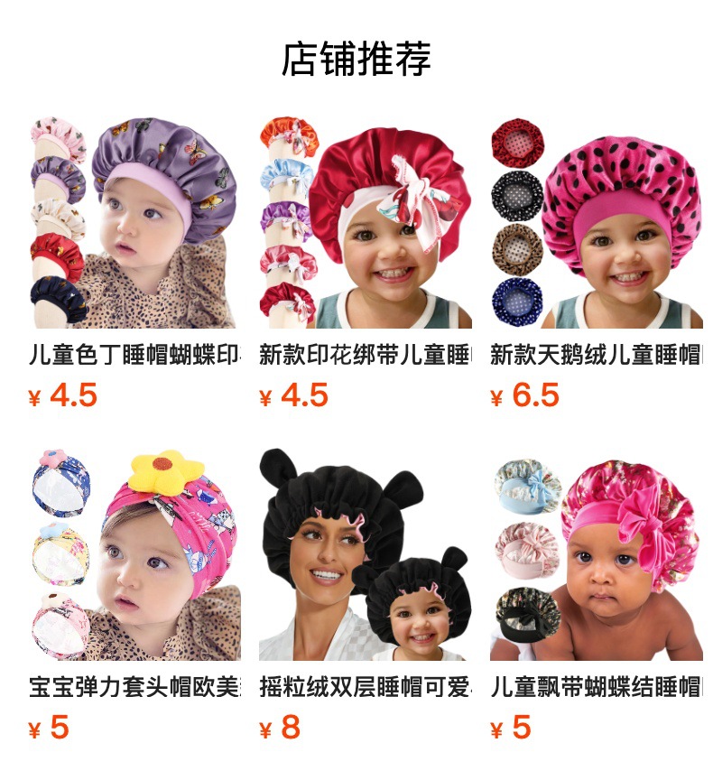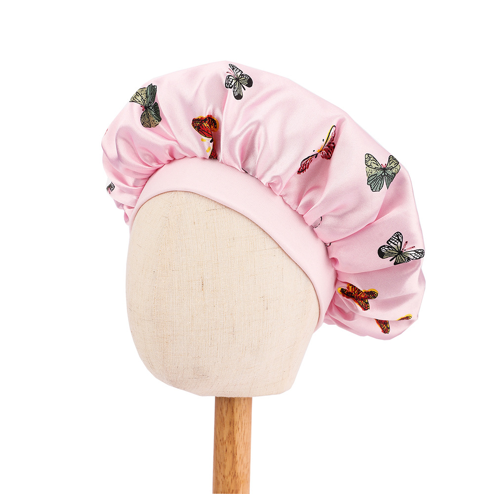 어린이 새틴 Nightcap 나비 인쇄 아기 머리 모자 아마존 뜨거운 판매 재고 아기 샤워 모자