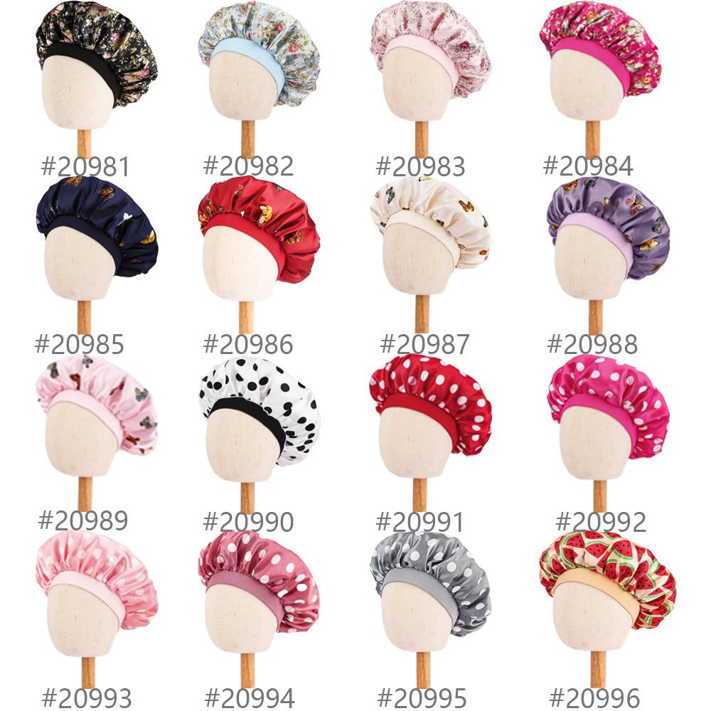 어린이 새틴 Nightcap 나비 인쇄 아기 머리 모자 아마존 뜨거운 판매 재고 아기 샤워 모자스토어 가기