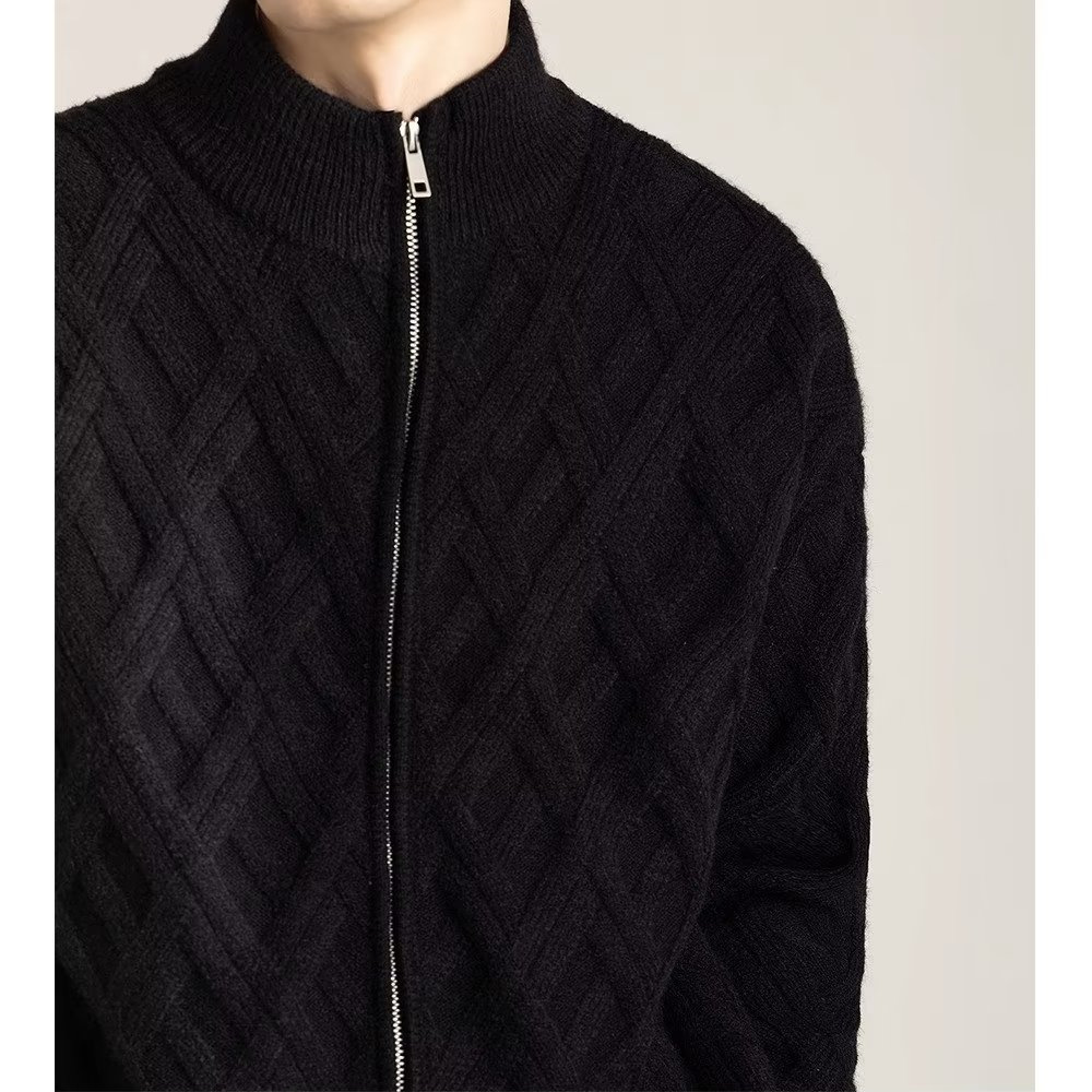 봄과 가을 2023 남자의 두꺼운 카디건 스트라이프 마름모 스웨터 느슨한 캐주얼 모든 매치 스웨터 패션 재킷
