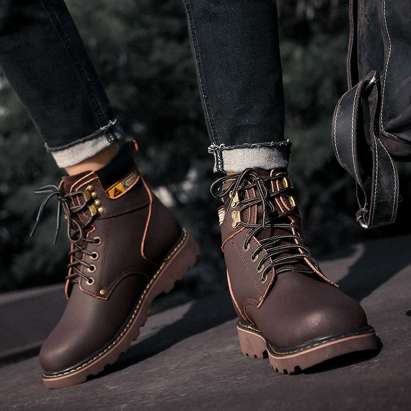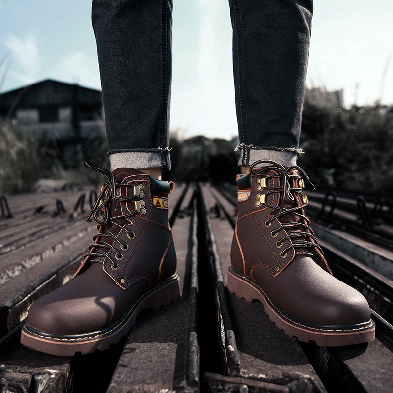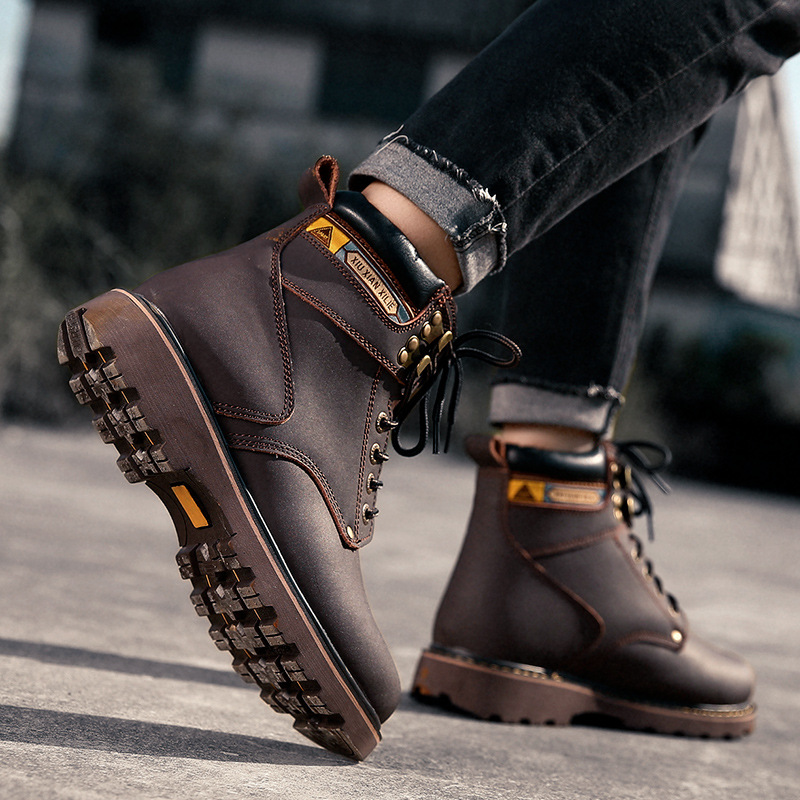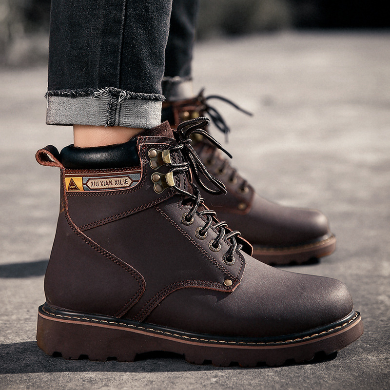 가을과 겨울 남성용 가죽 부츠 크로스 보더 해외 무역 가죽 남성 신발 야외 캐주얼 신발 작업복 부츠 하이탑 신발 남성용 가죽 부츠
