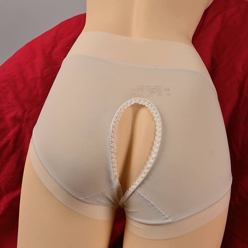 남자의 섹시한 하이 웨이스트 실키 통기성 비 이륙 팬티 삽입 가능한 오픈 가랑이 바지 삼각형 커플 침대 알몸 느낌 원활한 여성
