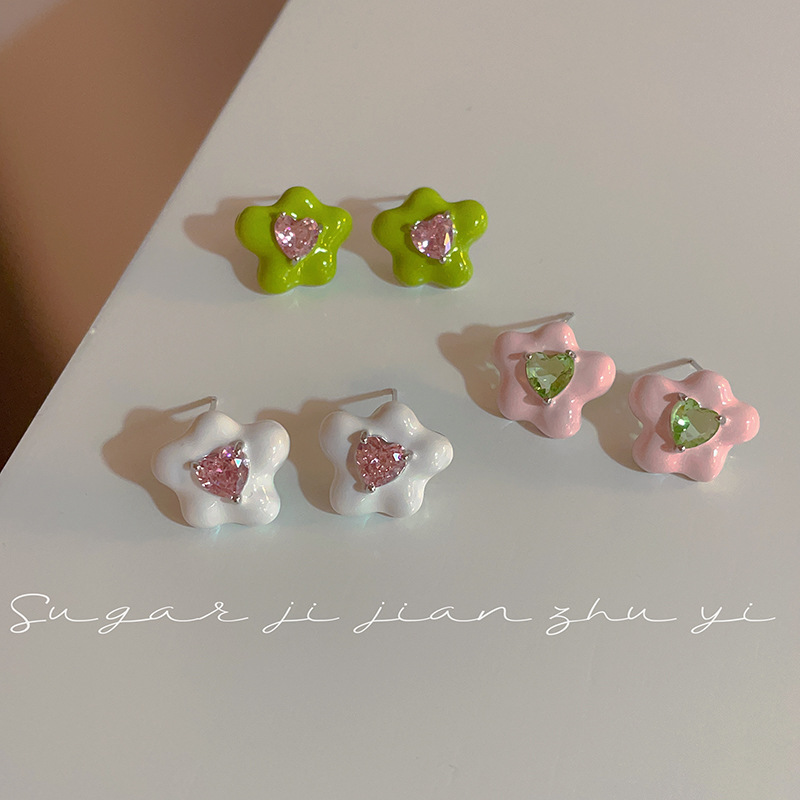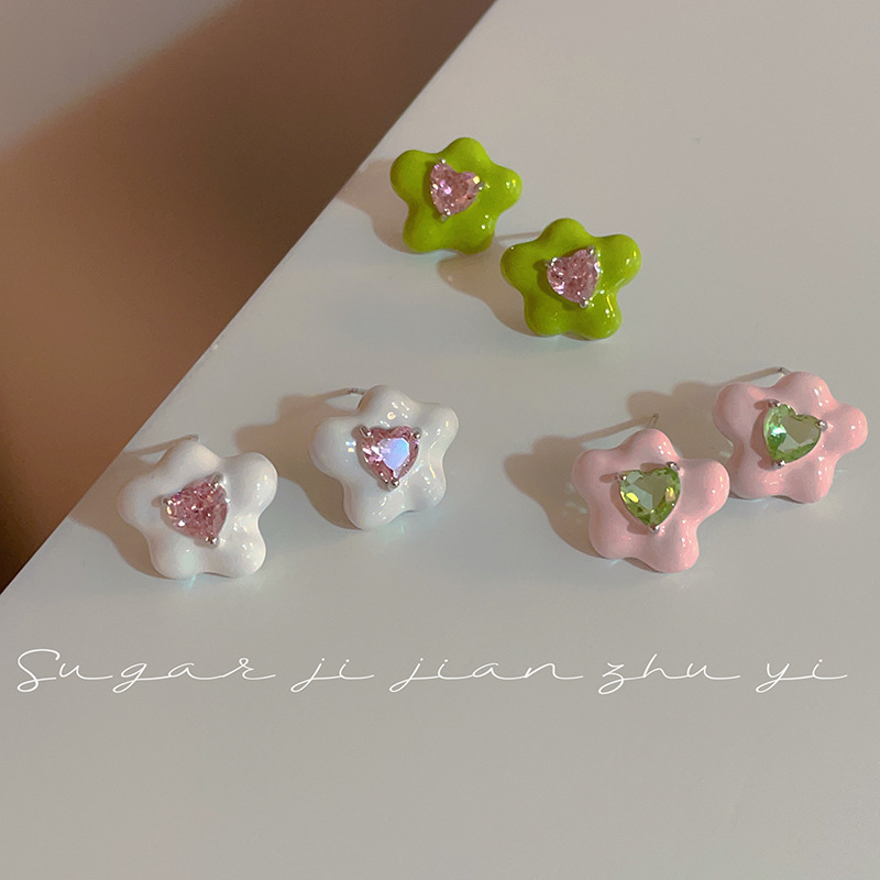 다채로운 에나멜 플라워 스터드 귀걸이 여성용 틈새 디자인 신선한 모리 귀걸이 여성용 2023 년 새 귀걸이스토어 가기