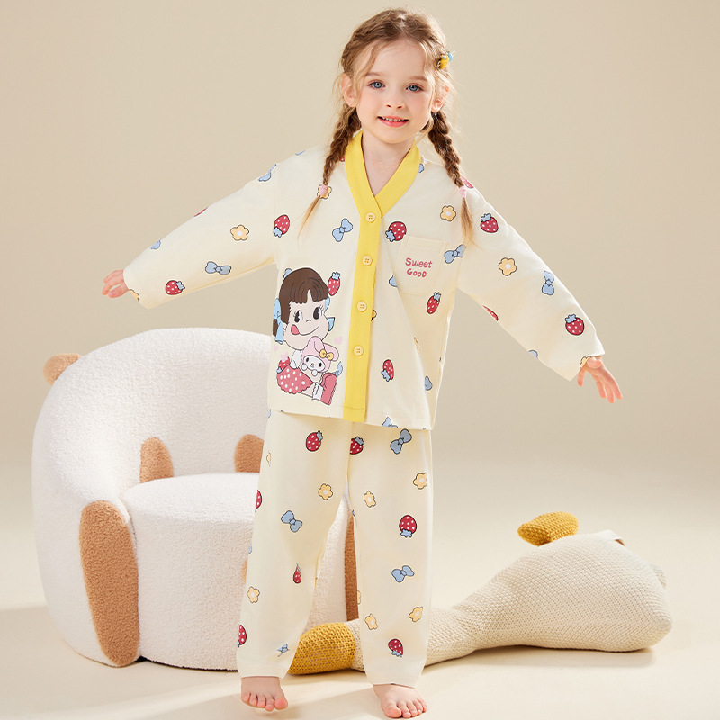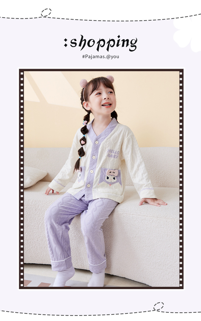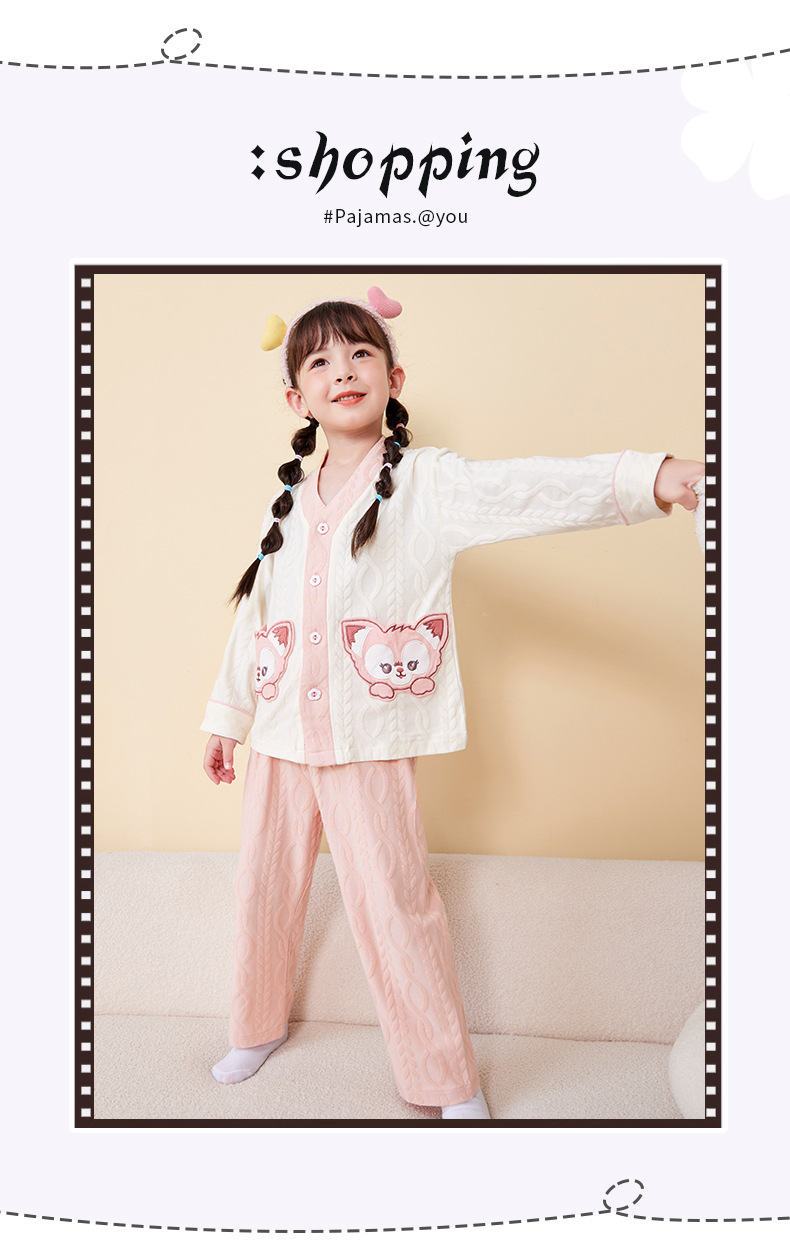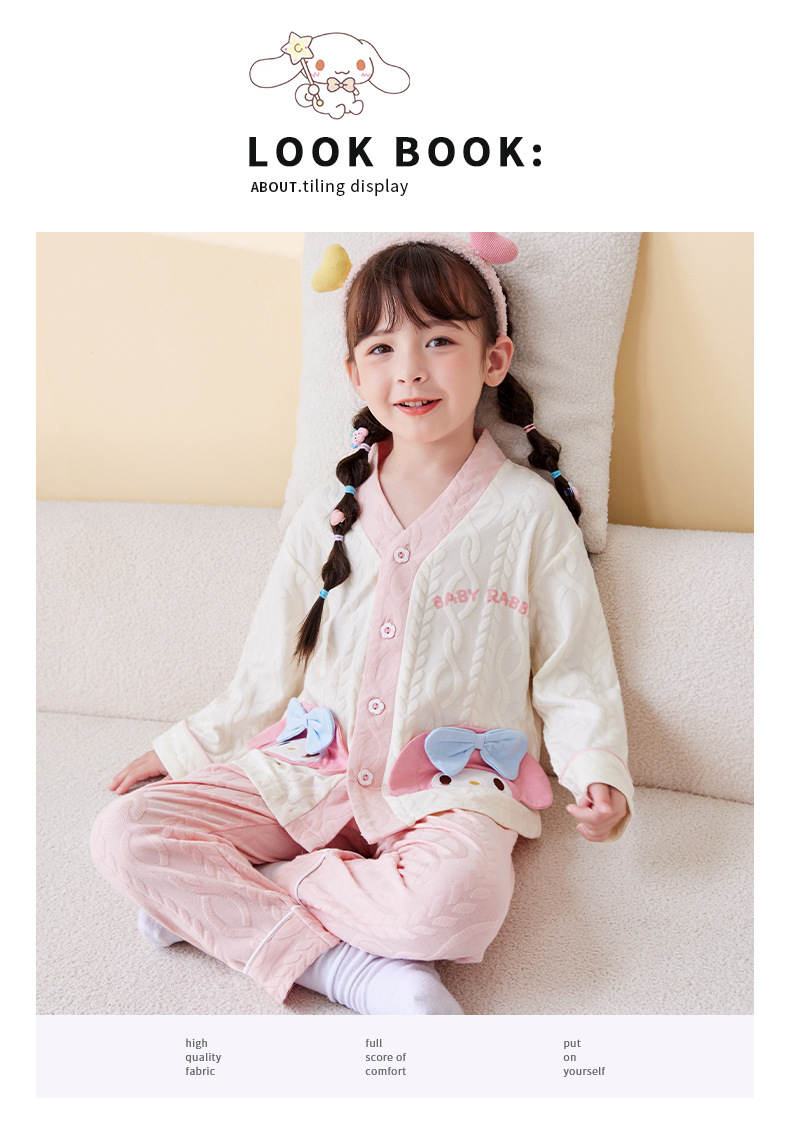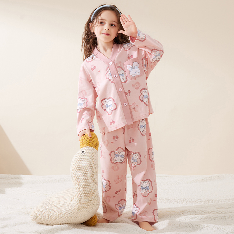 2024 년 새로운 어린이 잠옷 소녀 봄과 가을면 긴 소매 어린 소녀 만화 면화 홈 의류 세트 가을스토어 가기