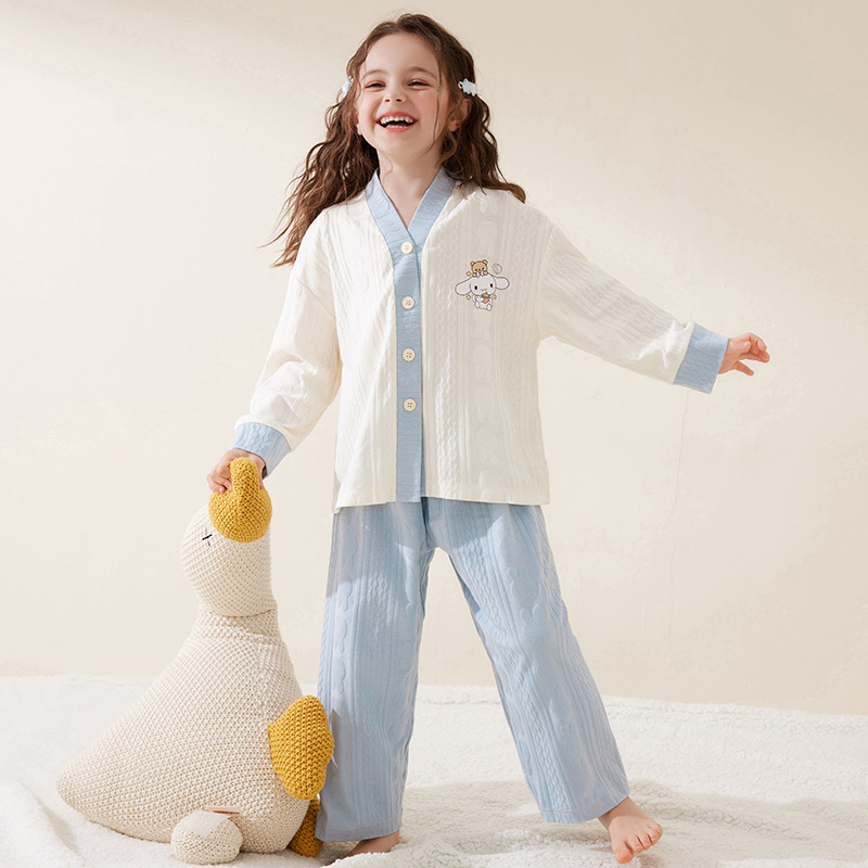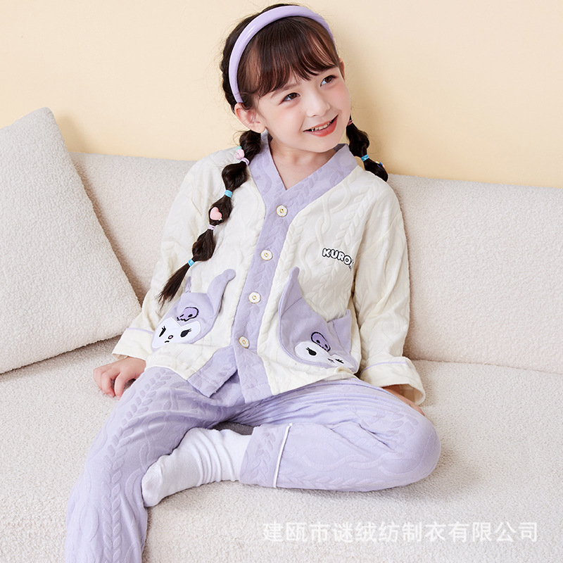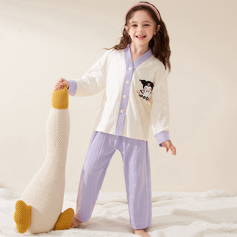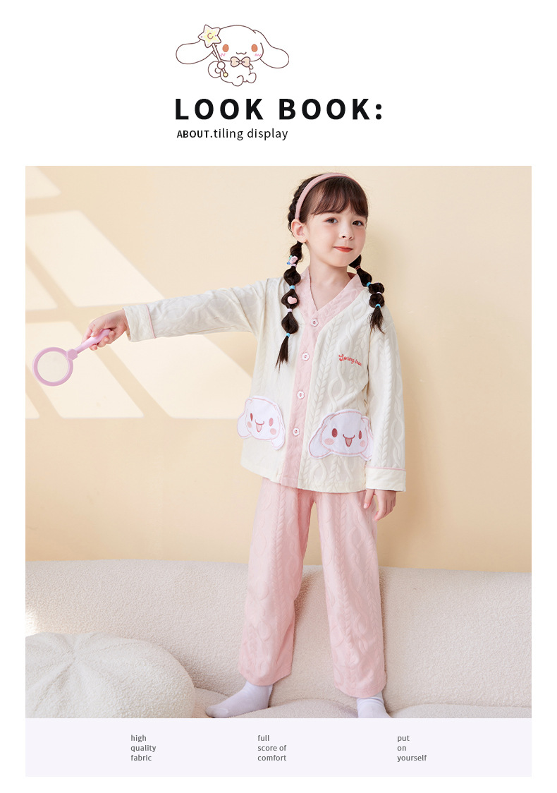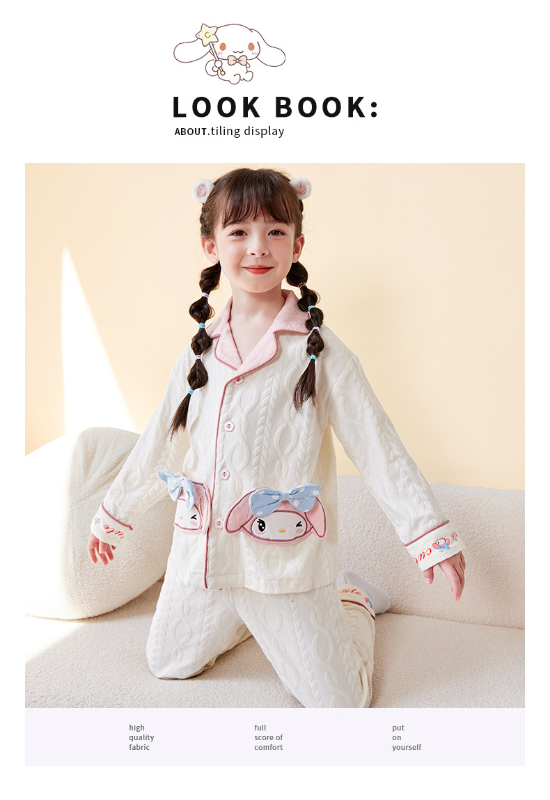 2024 년 새로운 어린이 잠옷 소녀 봄과 가을면 긴 소매 어린 소녀 만화 면화 홈 의류 세트 가을