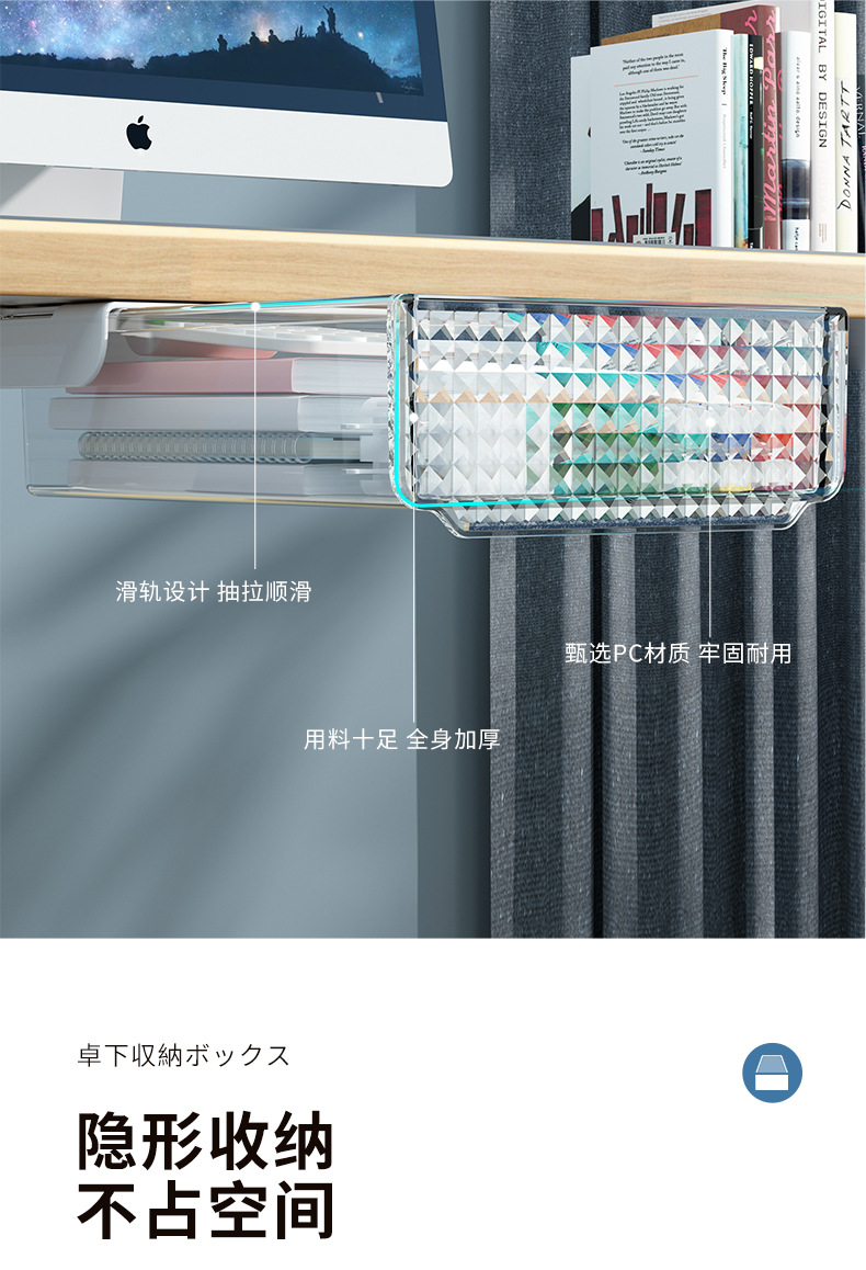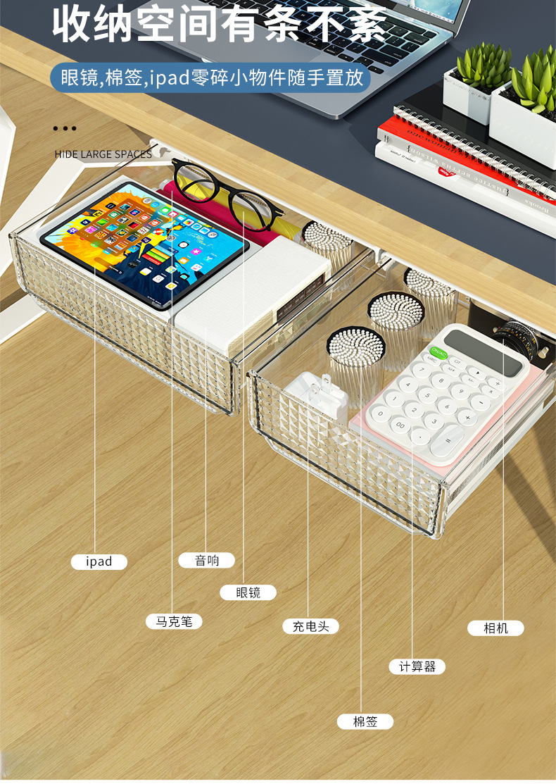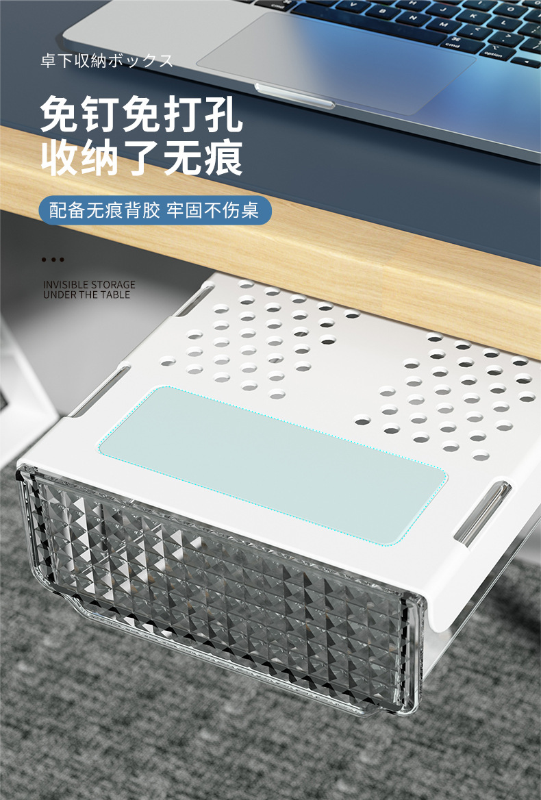 언더 데스크 보이지 않는 서랍형 수납함 펀치 프리 데스크 데스크 데스크 마감 아티팩트 문구 문서 마무리 박스