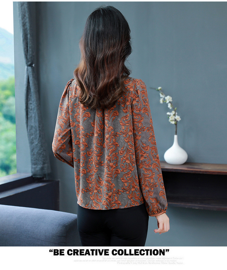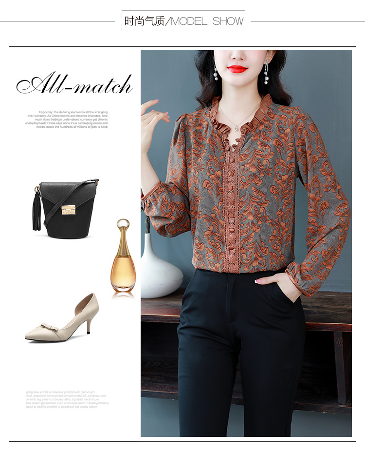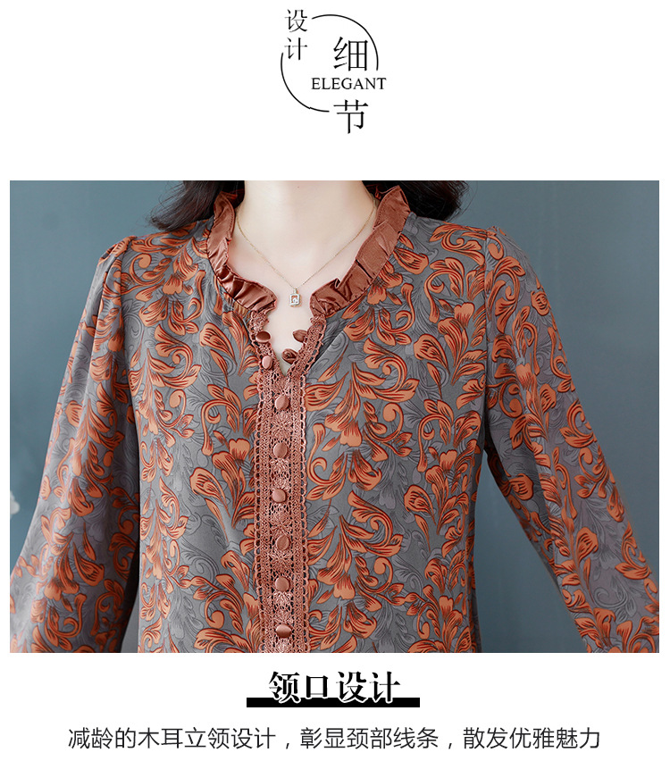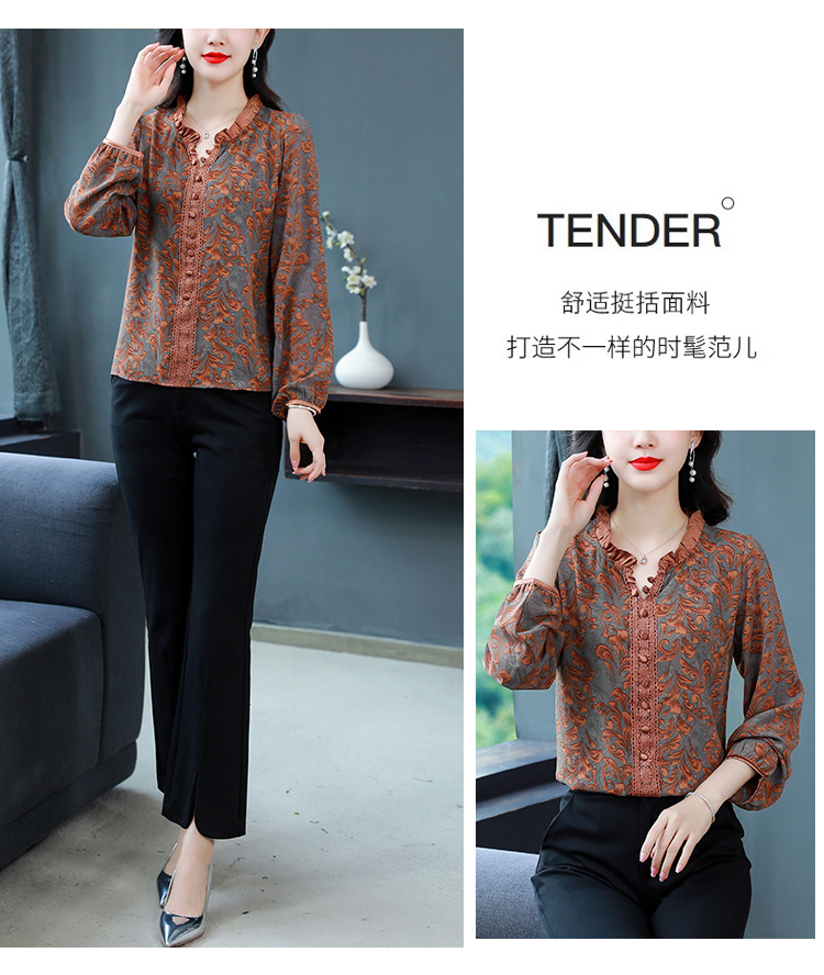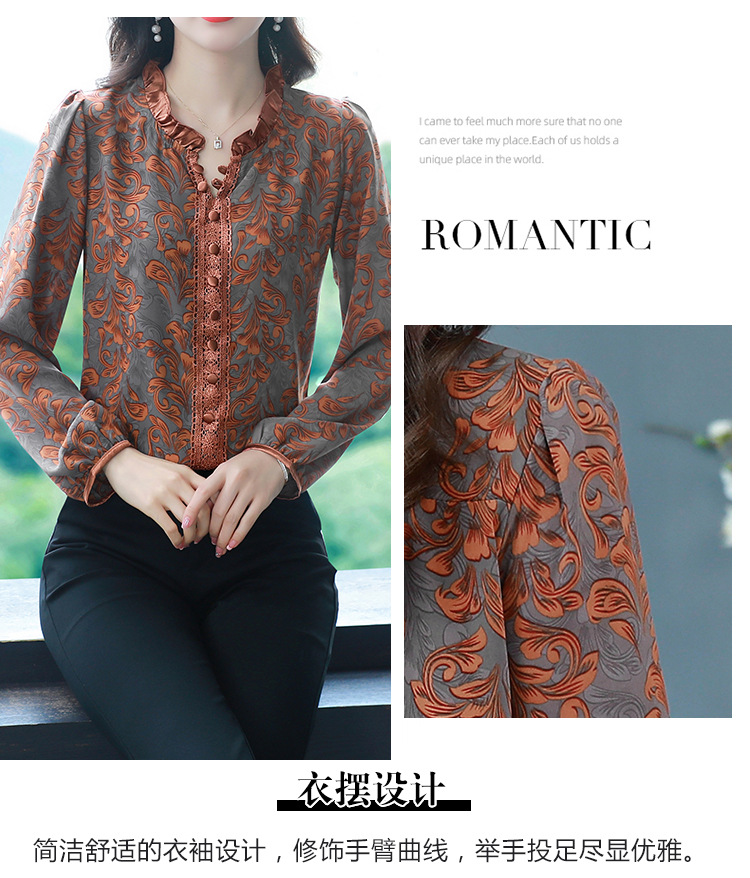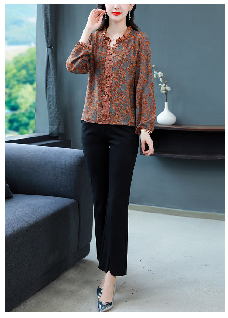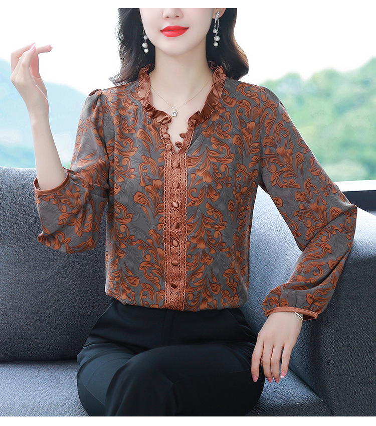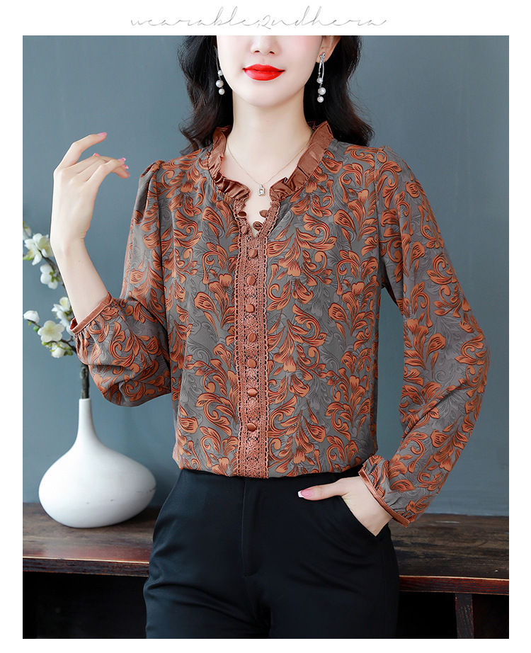 리얼 샷 하이 그레이드 뽕나무 실크 2023 가을 신작 긴팔 연잎 칼라 레이스 스티칭 기질 연령 감소 올매치 탑스토어 가기
