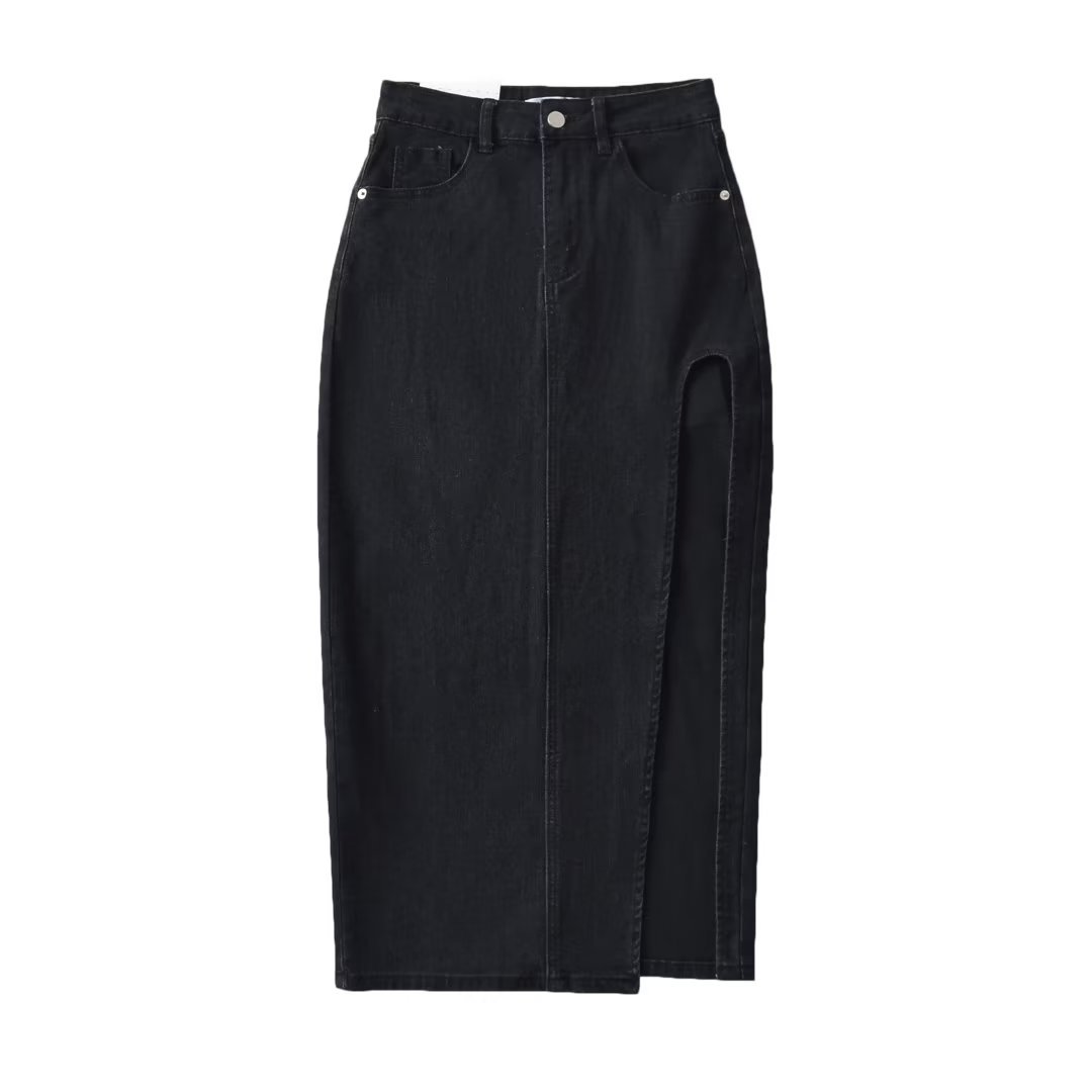 2023 스커트 패션 하이 웨이스트 슬림 핏 슬리밍 사이드 스플릿 디자인 감각 중간 길이 스트레이트 스트레치 데님 스커트스토어 가기