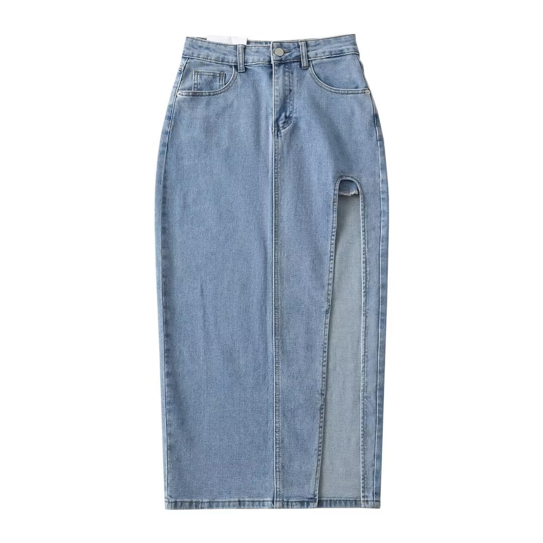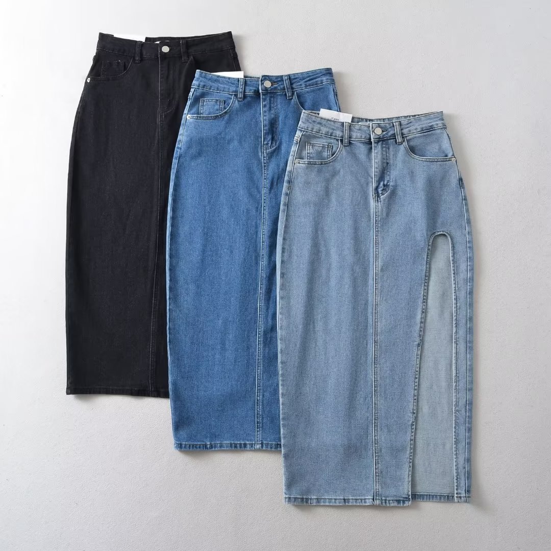 2023 스커트 패션 하이 웨이스트 슬림 핏 슬리밍 사이드 스플릿 디자인 감각 중간 길이 스트레이트 스트레치 데님 스커트