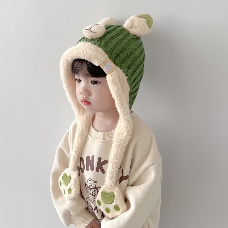 어린이 모자 남자의 유행 가을과 겨울 귀여운 슈퍼 귀여운 니트 모직 모자 여자 방풍 귀 보호 아기의 기모 따뜻한 모자스토어 가기