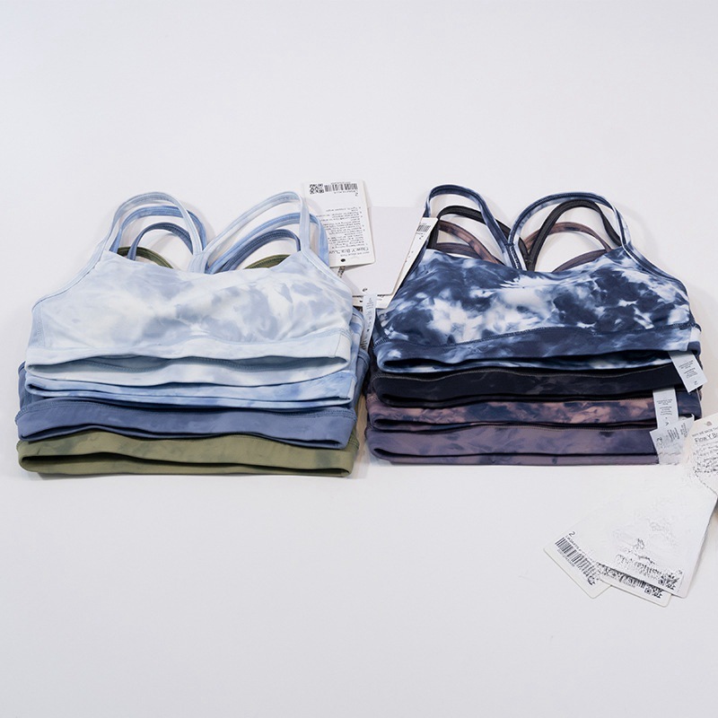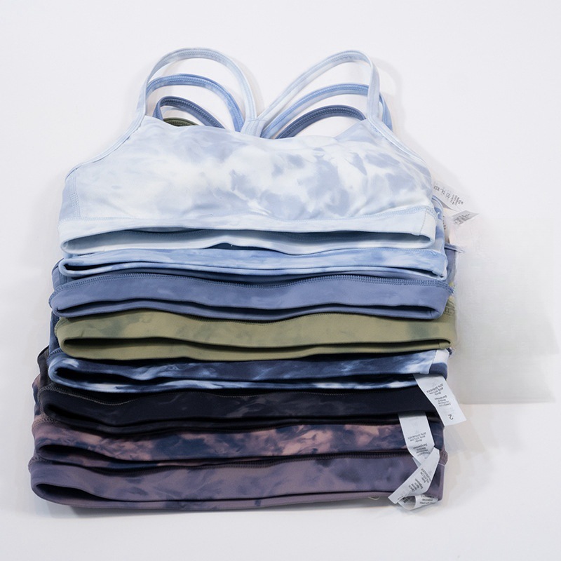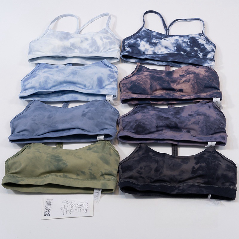 유럽과 미국의 타이 염색 인쇄 요가 옷 양면 솔질 Y 브라 얇은 스트랩 뷰티 백 스트랩 여성 스포츠 타이트한 속옷
