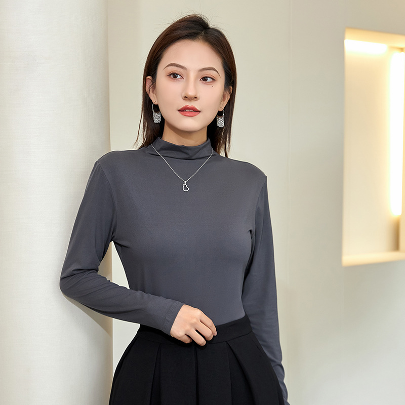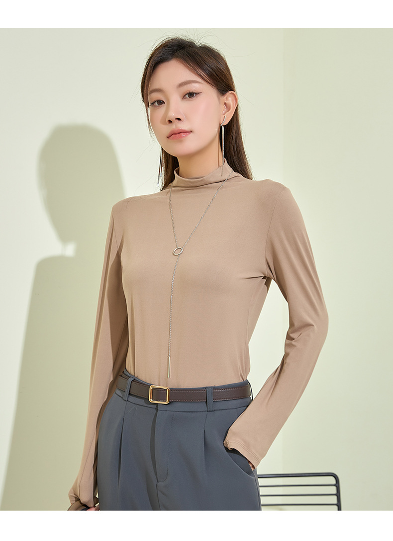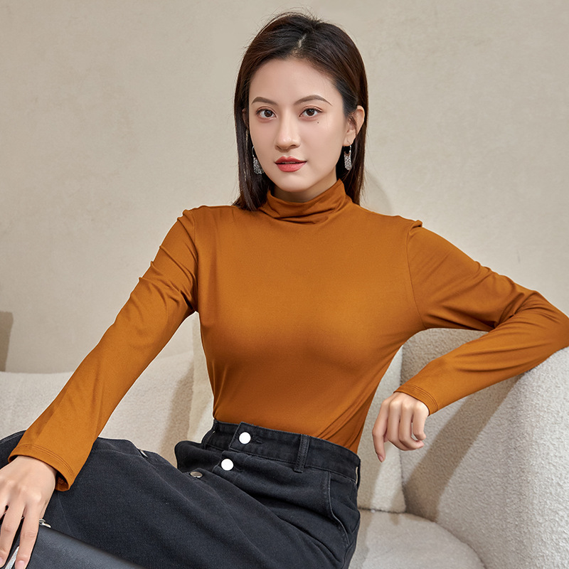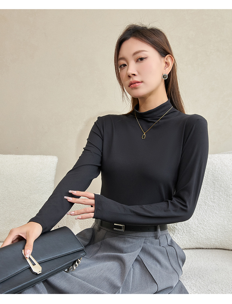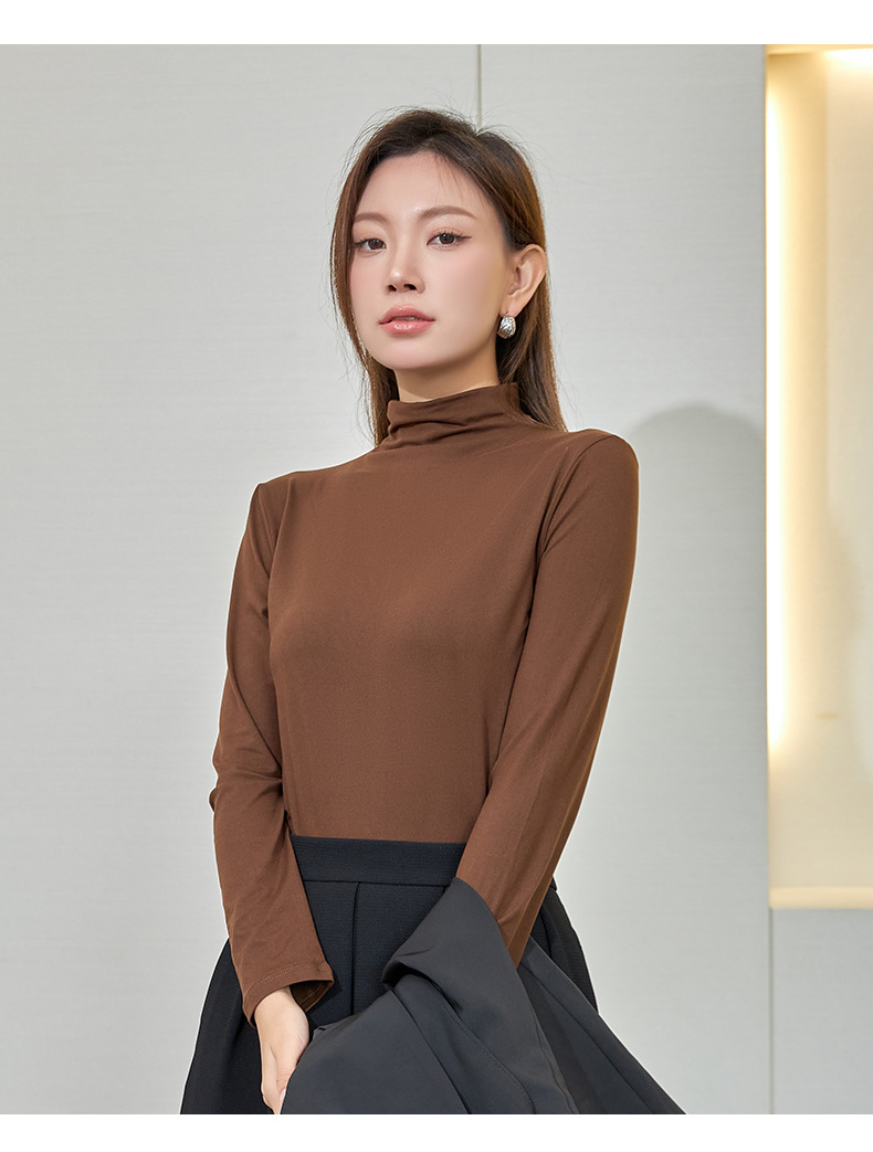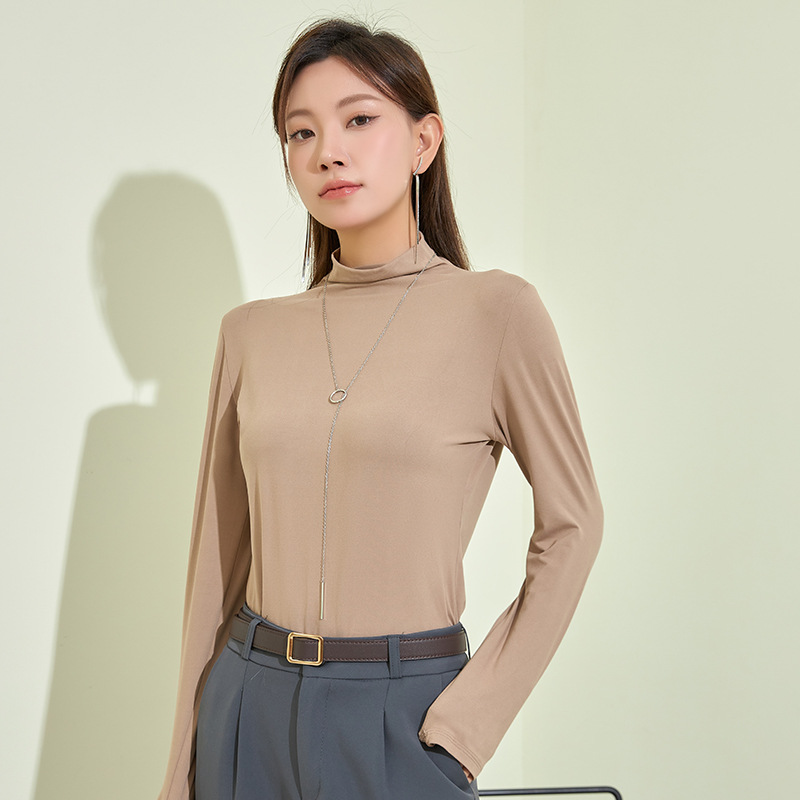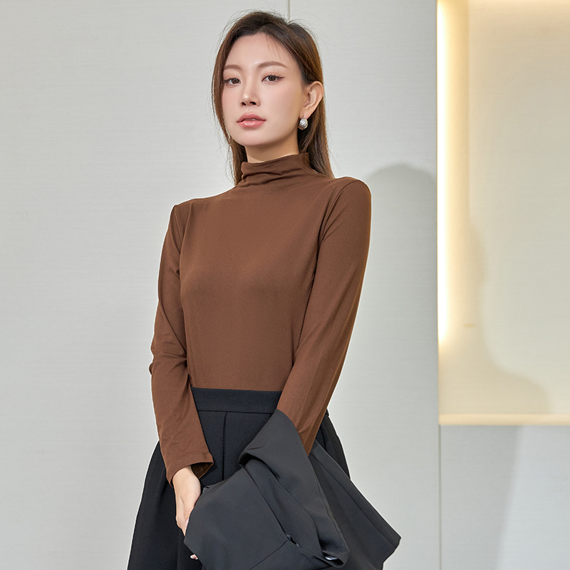 하프 하이 칼라베이스 셔츠 여성용 하이 엔드 가을 및 겨울 새로운 슬림 핏 내측 긴팔 티셔츠 외부 착용 솔리드 컬러 슬림 탑