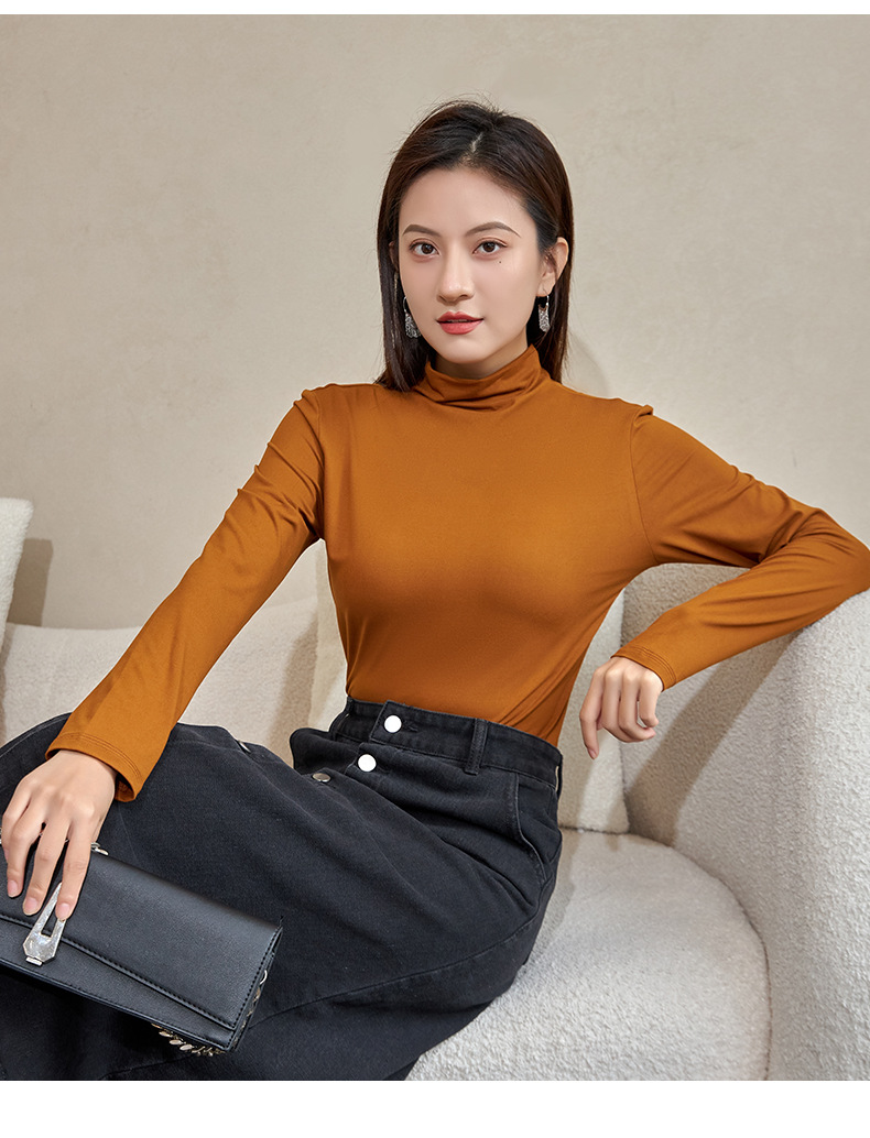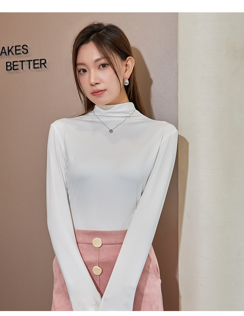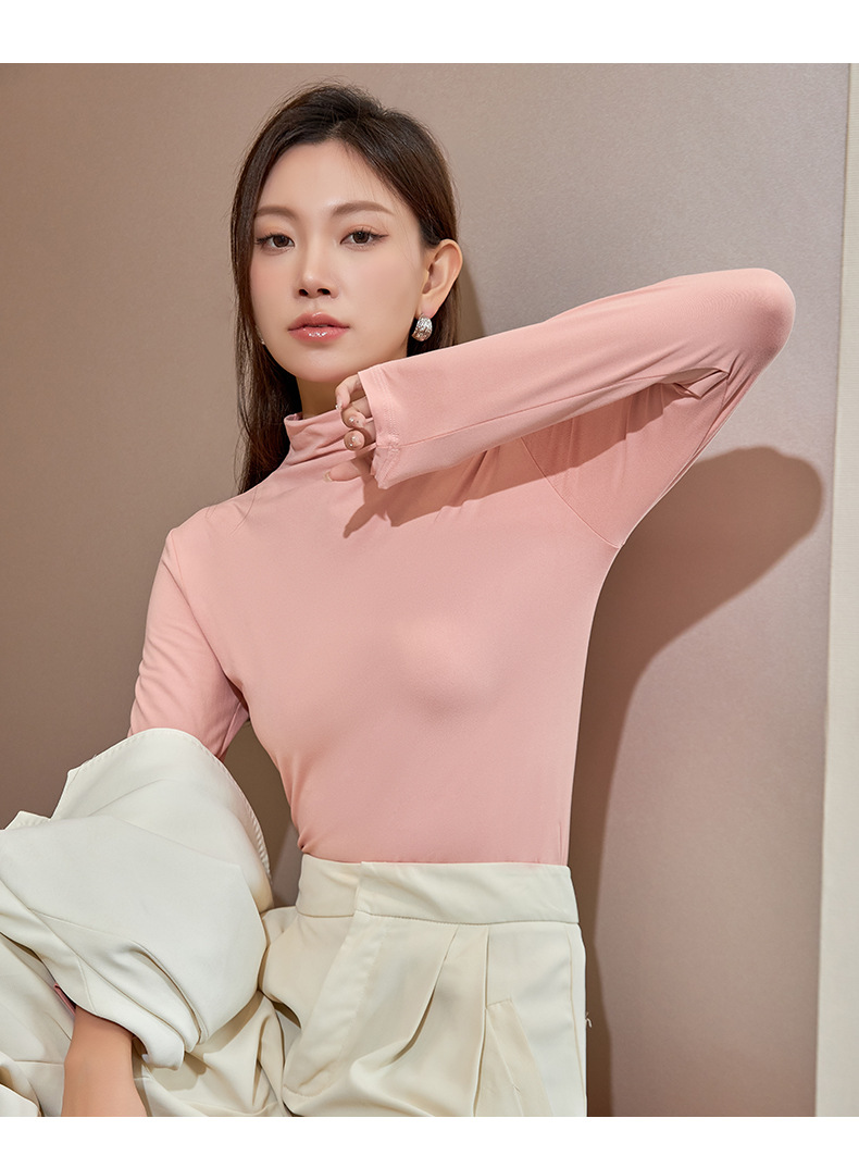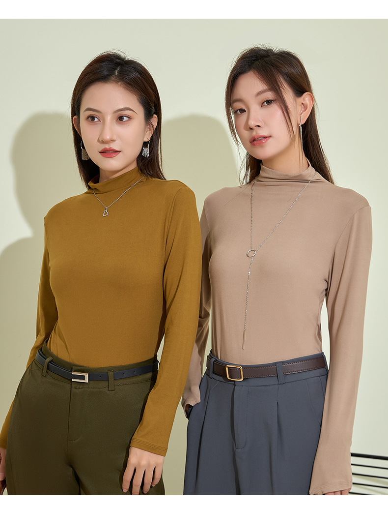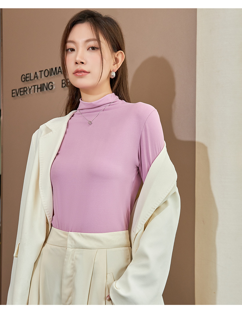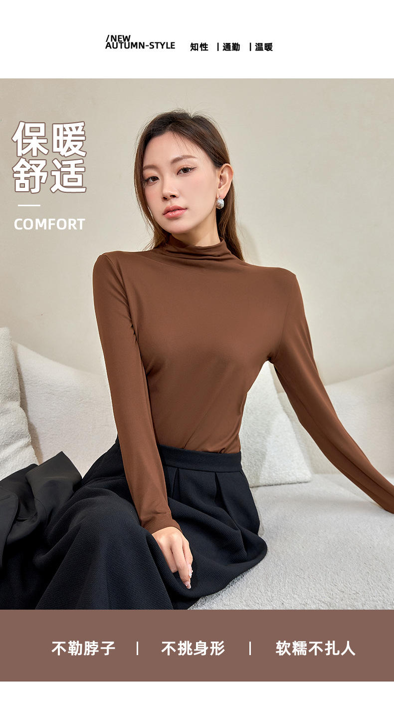 하프 하이 칼라베이스 셔츠 여성용 하이 엔드 가을 및 겨울 새로운 슬림 핏 내측 긴팔 티셔츠 외부 착용 솔리드 컬러 슬림 탑