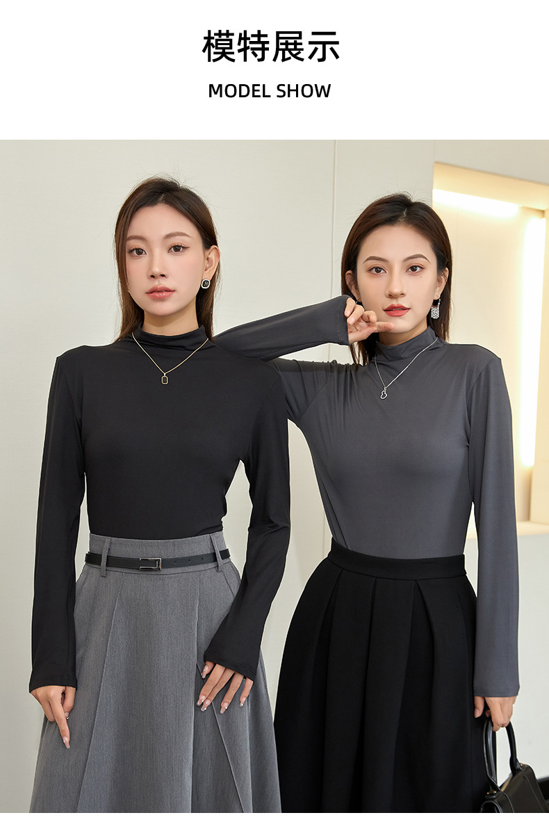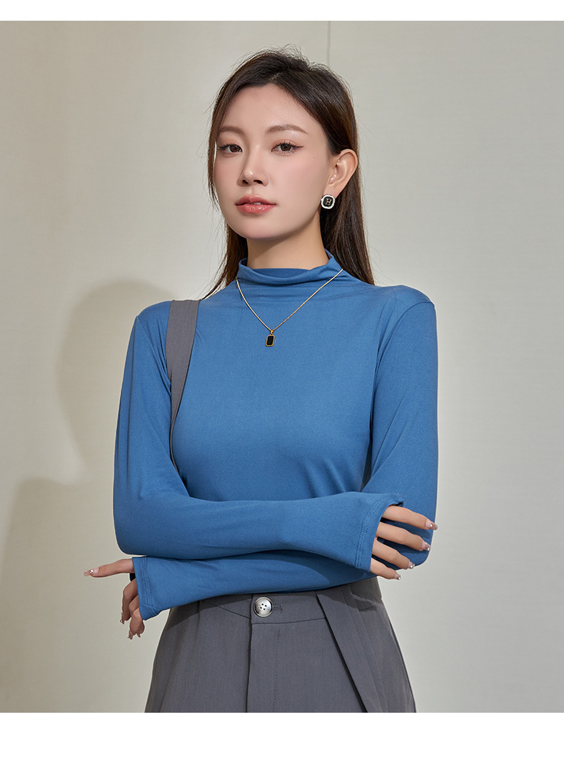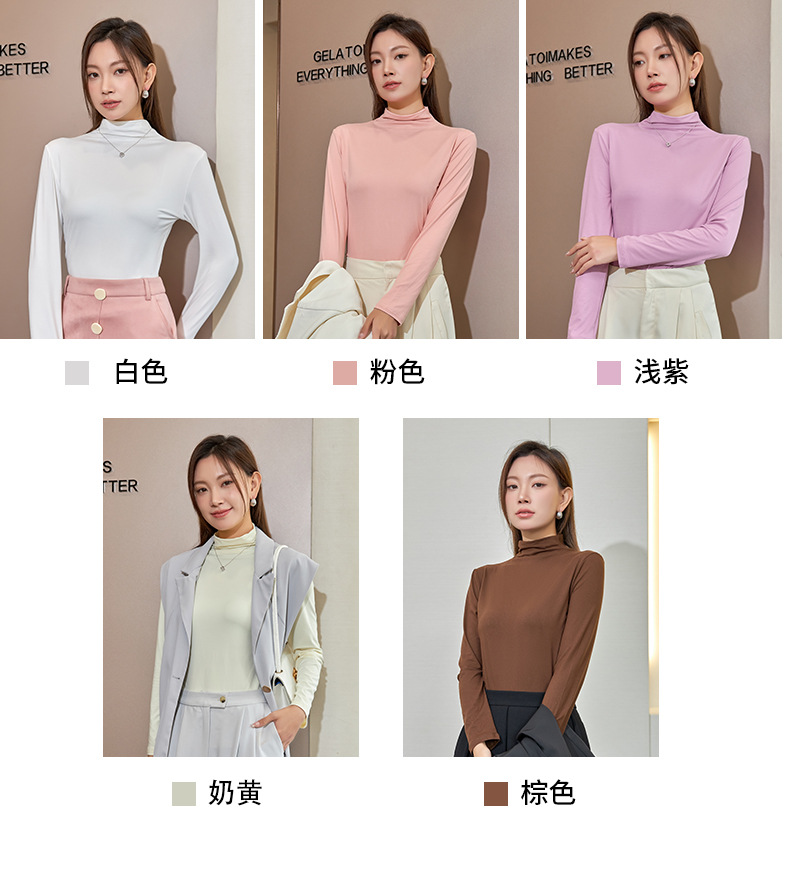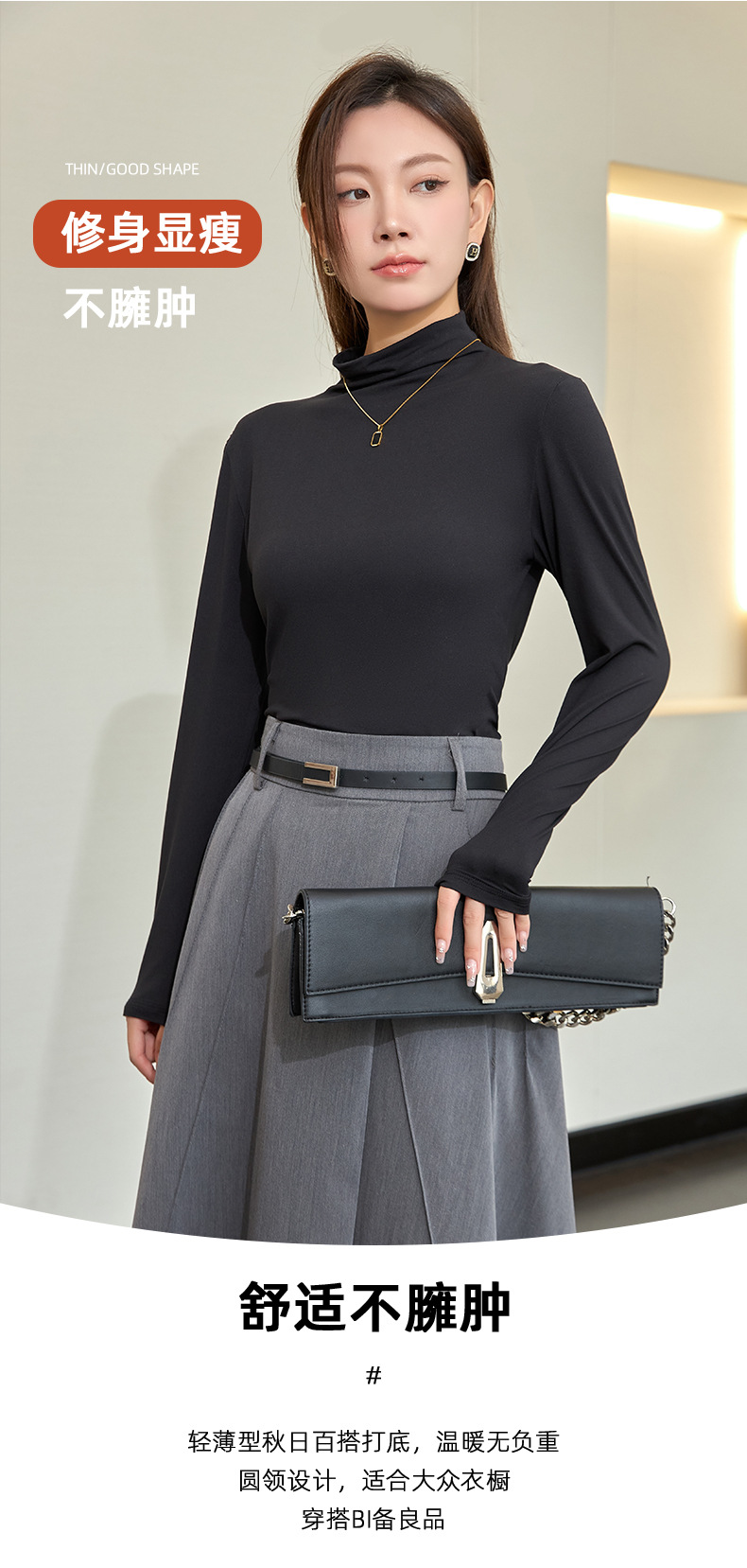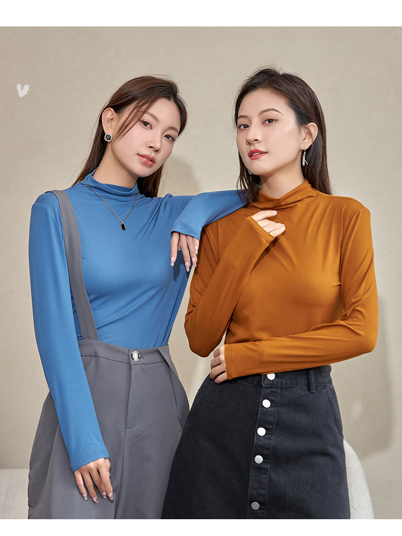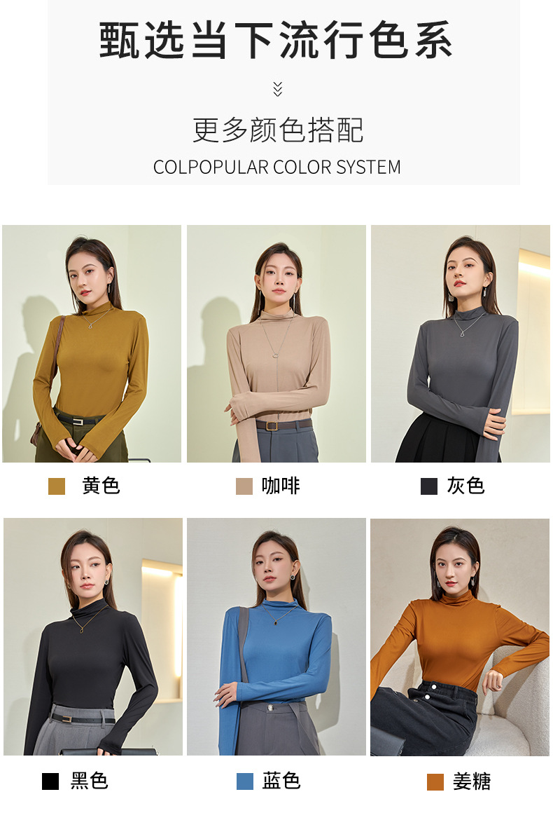 하프 하이 칼라베이스 셔츠 여성용 하이 엔드 가을 및 겨울 새로운 슬림 핏 내측 긴팔 티셔츠 외부 착용 솔리드 컬러 슬림 탑