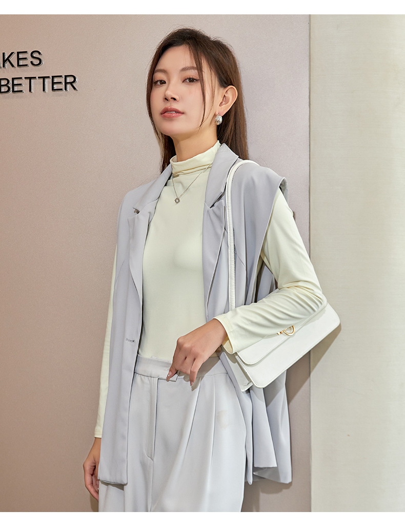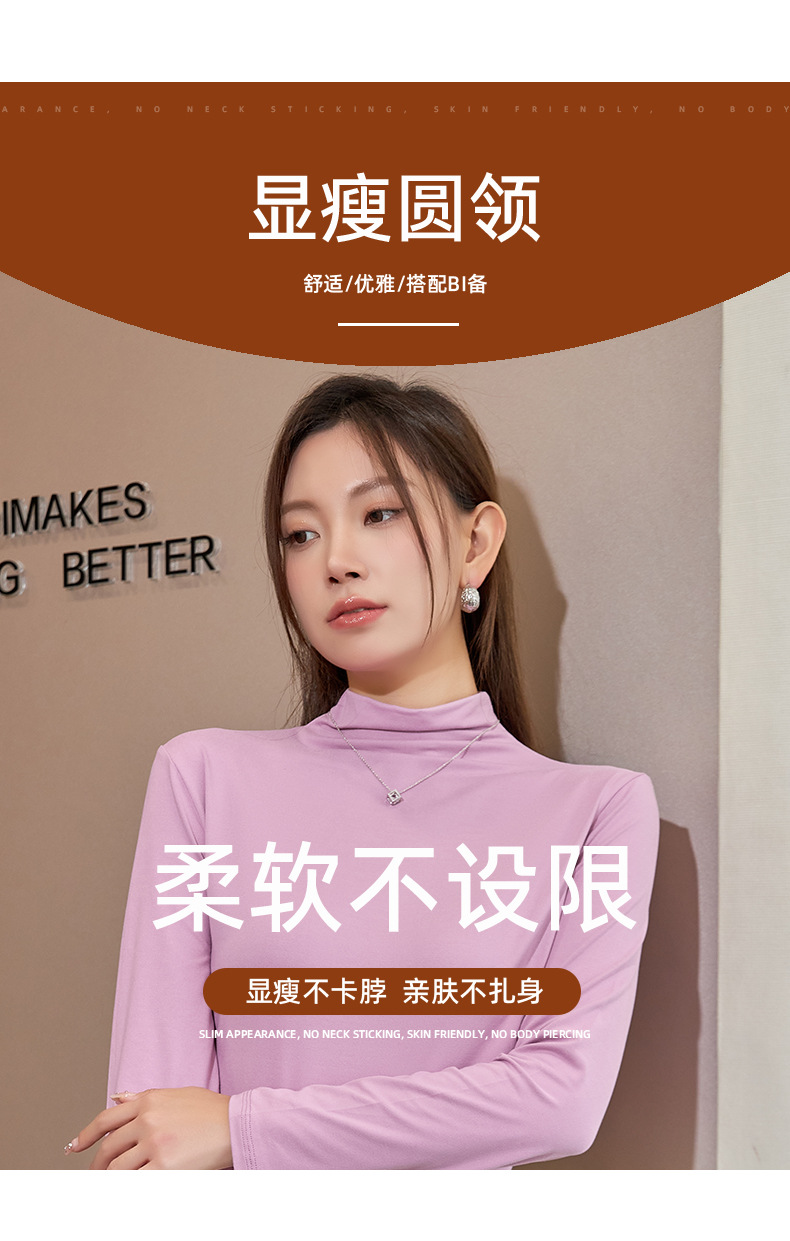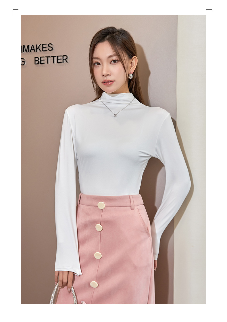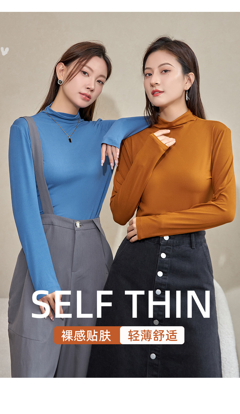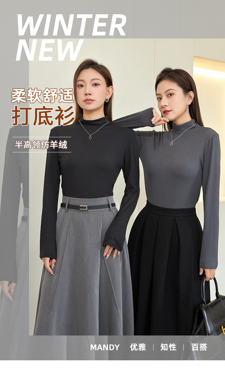 하프 하이 칼라베이스 셔츠 여성용 하이 엔드 가을 및 겨울 새로운 슬림 핏 내측 긴팔 티셔츠 외부 착용 솔리드 컬러 슬림 탑