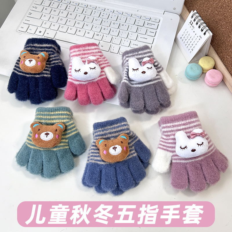 어린이 장갑 아기 겨울 장갑-3-4-6 세 귀여운 다섯 손가락 소년과 소녀 따뜻한 장갑 다섯 손가락 만화