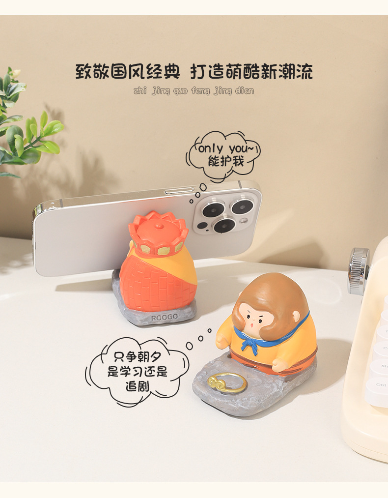 만화 Q 버전 서쪽 데스크탑 휴대 전화 브래킷 장식품 드라마 유물 휴대 전화 태블릿 지원 프레임을 쫓는 게으른 남자스토어 가기