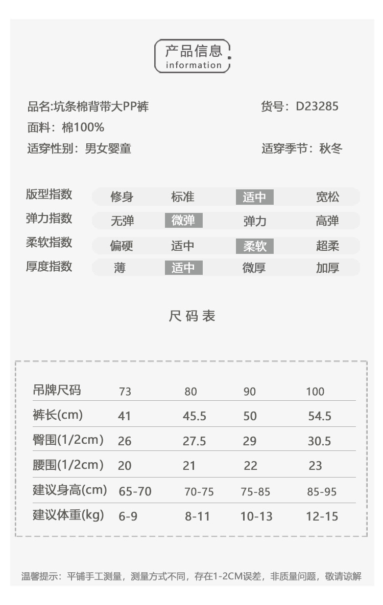 아기의 작업복 아기의 대형 PP 바지 봄과 가을 겉옷 2023 새로운 남성과 여성의 아기 가을베이스 바지스토어 가기