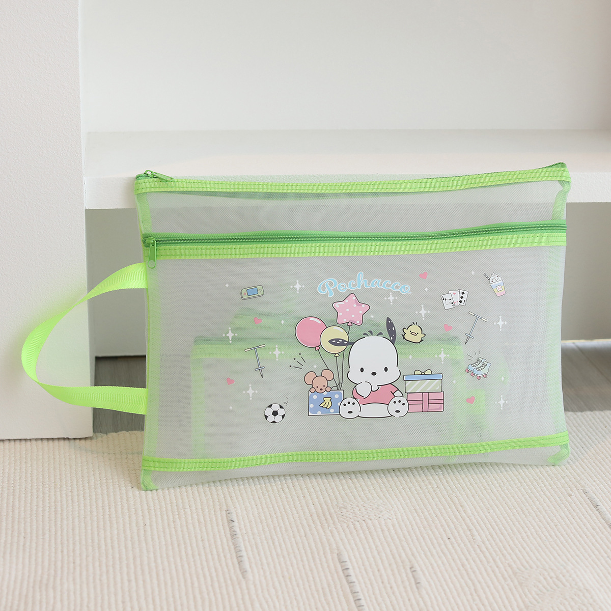 만화 A4 메쉬 투명 학생 대용량 2 층 과목 분류 가방 시험지 서류 청구서 지퍼 데이터 가방