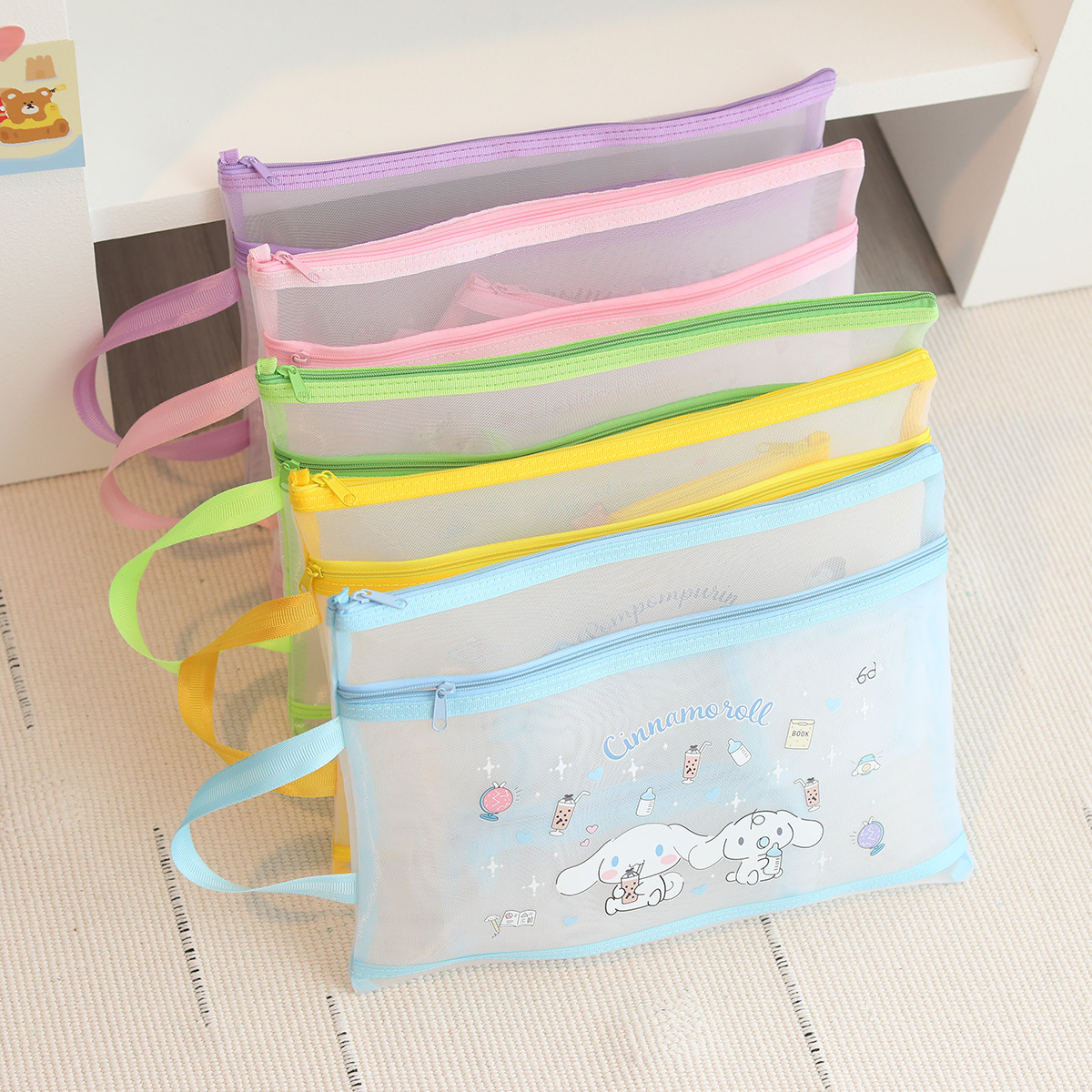 만화 A4 메쉬 투명 학생 대용량 2 층 과목 분류 가방 시험지 서류 청구서 지퍼 데이터 가방스토어 가기