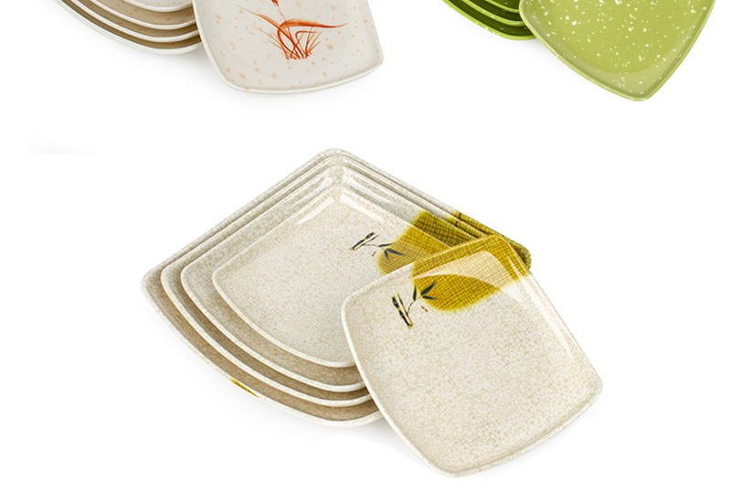 그린 로터스 덮은 밥 접시 사각 접시 패스트 푸드 접시 사각 멜라민 상업 식기 볶음 가루 접시 전골 사각형 접시