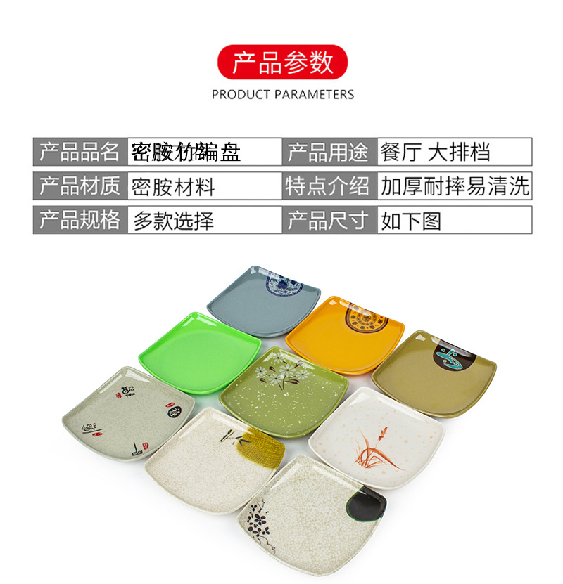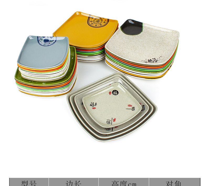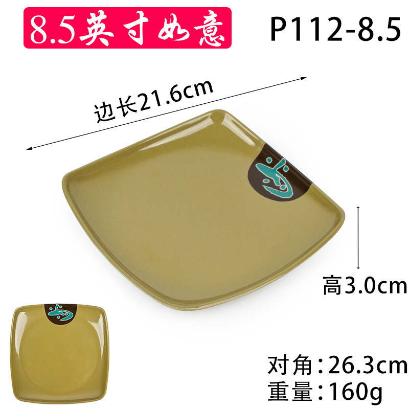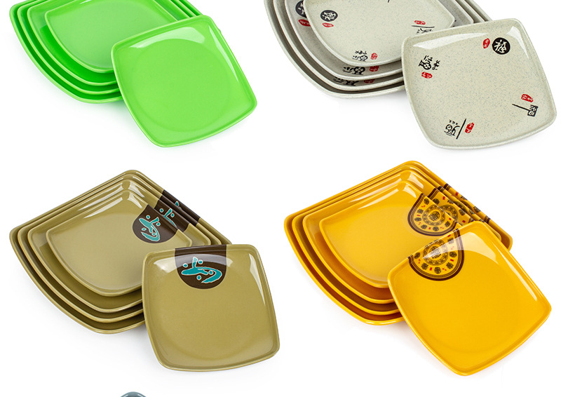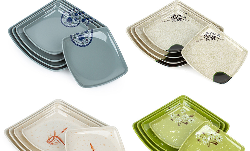 그린 로터스 덮은 밥 접시 사각 접시 패스트 푸드 접시 사각 멜라민 상업 식기 볶음 가루 접시 전골 사각형 접시스토어 가기