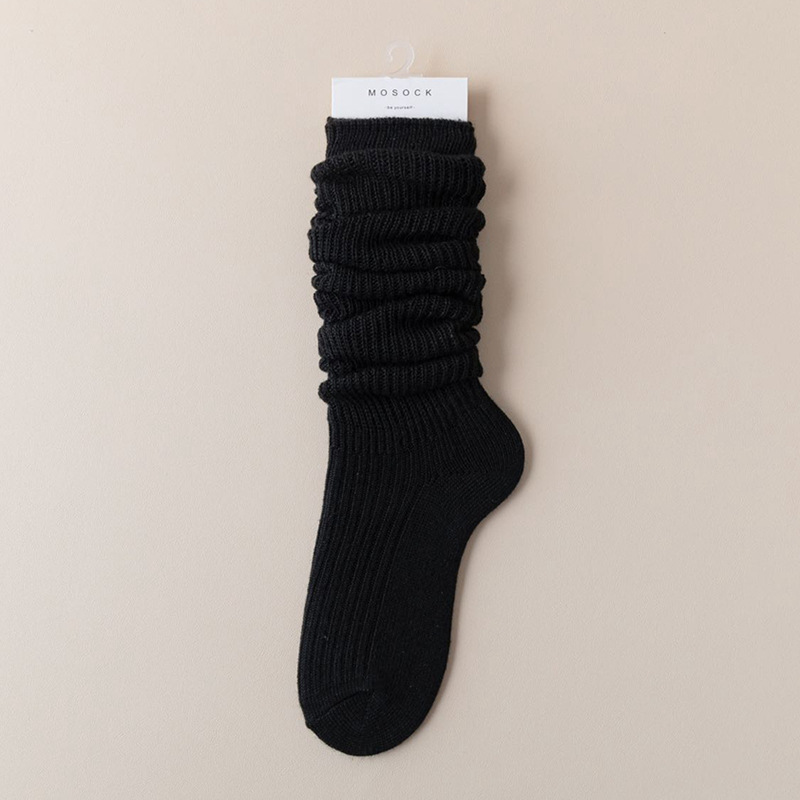 일본 가을과 겨울 난방 원사 모든 매치 스택 여성용 단색 세로 줄무늬 양말 흰색 중간 길이 양말 y2k 니트 양말스토어 가기