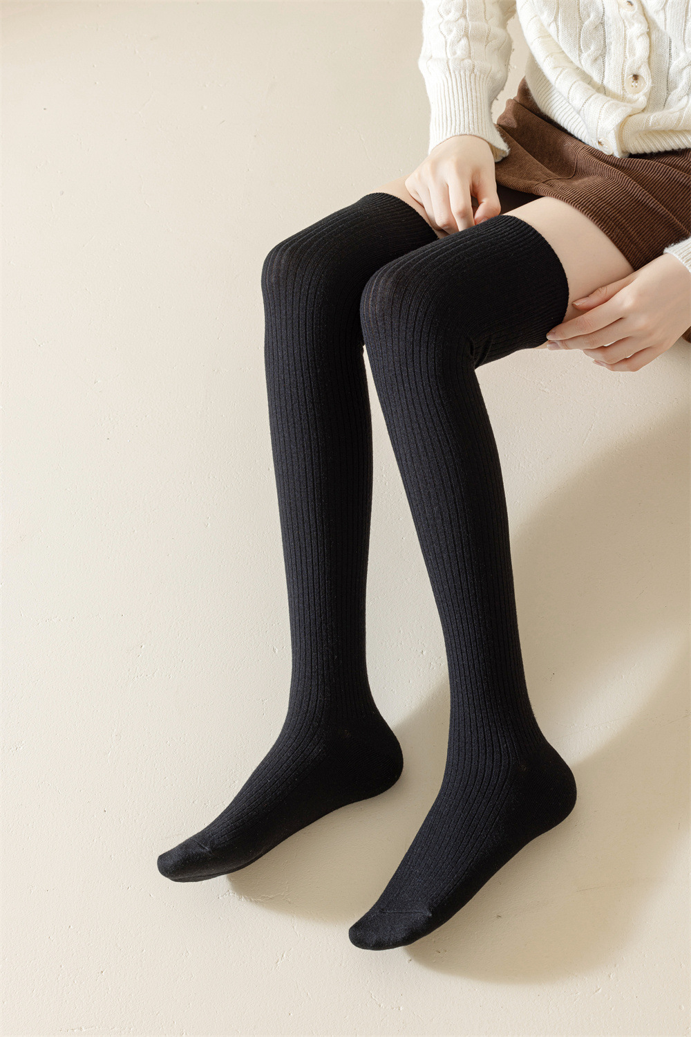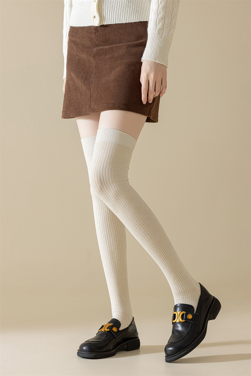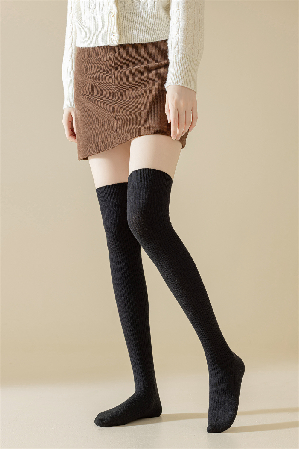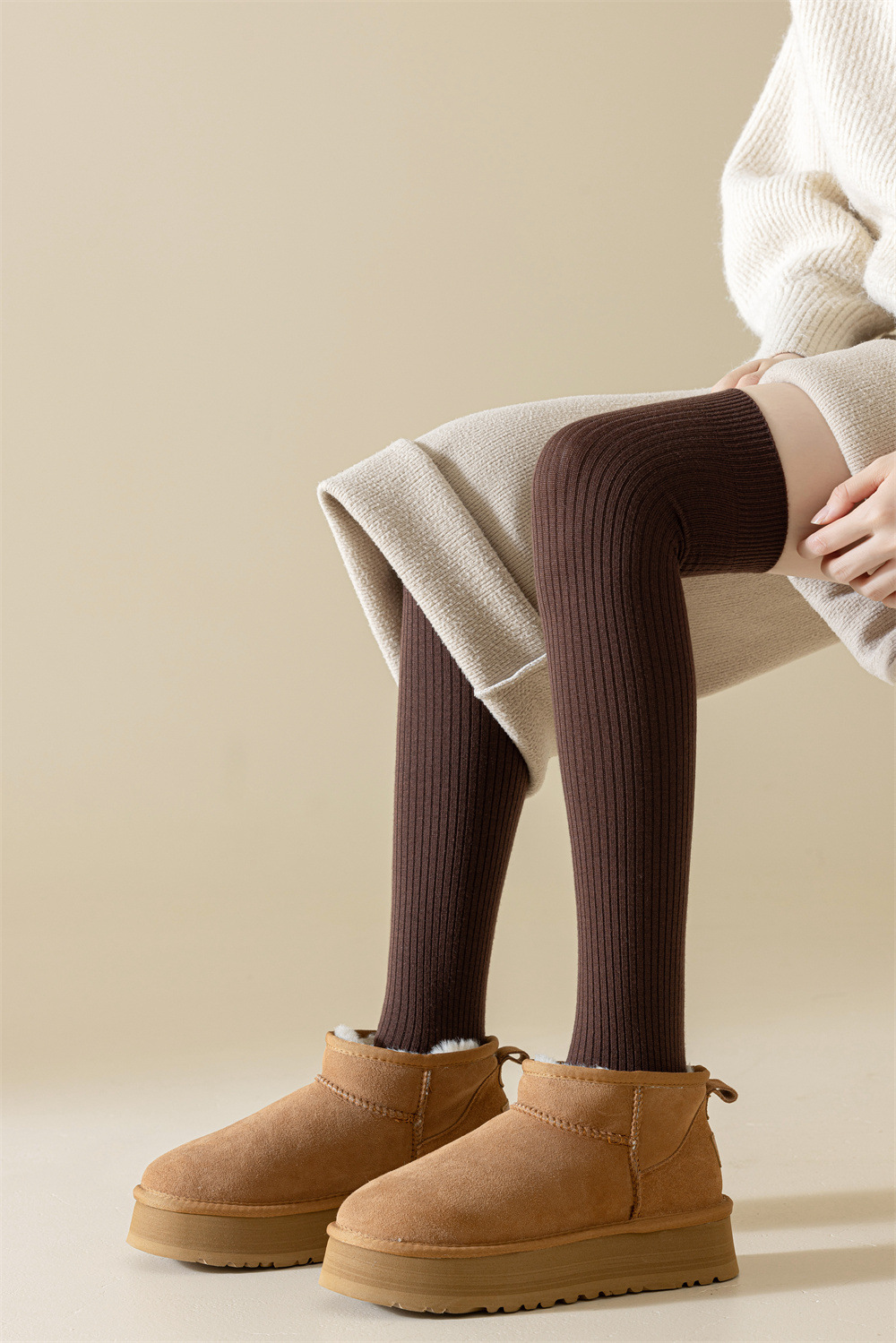 秋冬羊绒过膝袜双针美拉德色保暖抗寒显瘦女士护膝袜子诸暨袜业