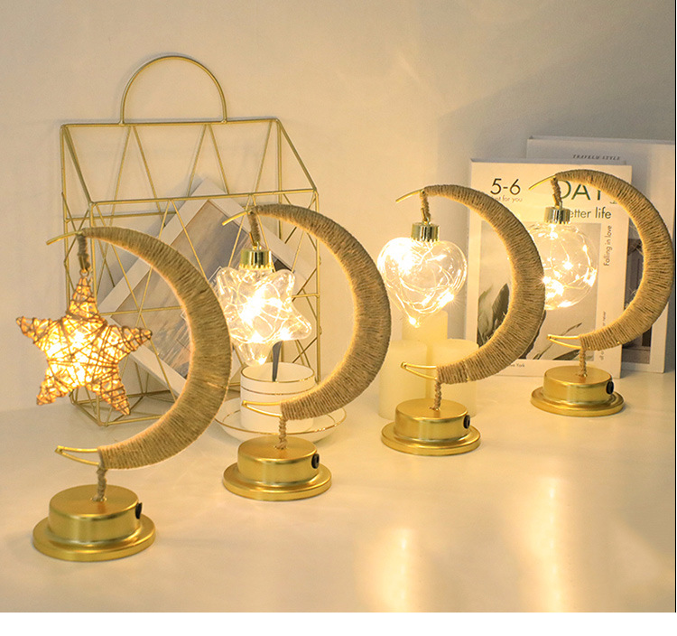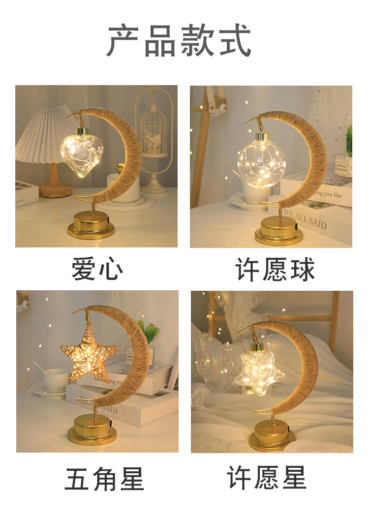 국경 간 새로운 LED 플러그인 대마 로프 스타 램프 달 램프 라운드 볼 빛나는 USB 장식 선물 야간 조명