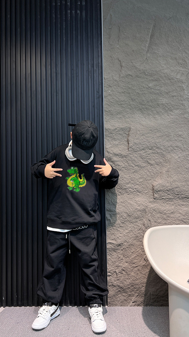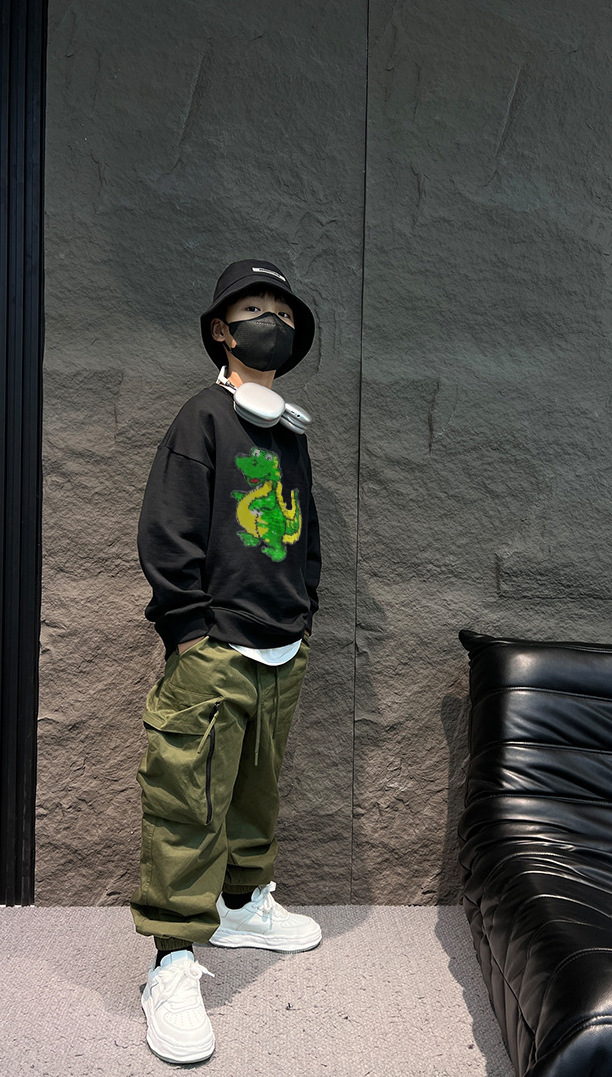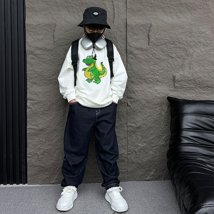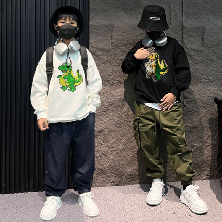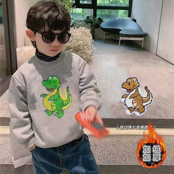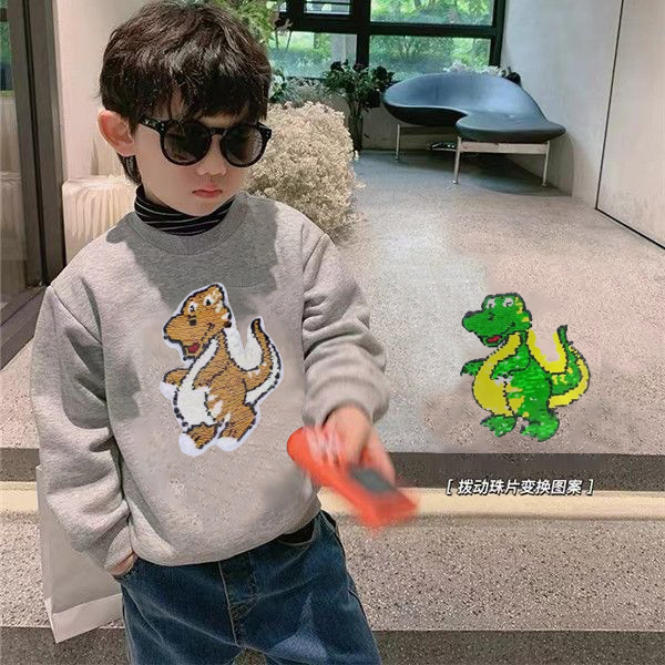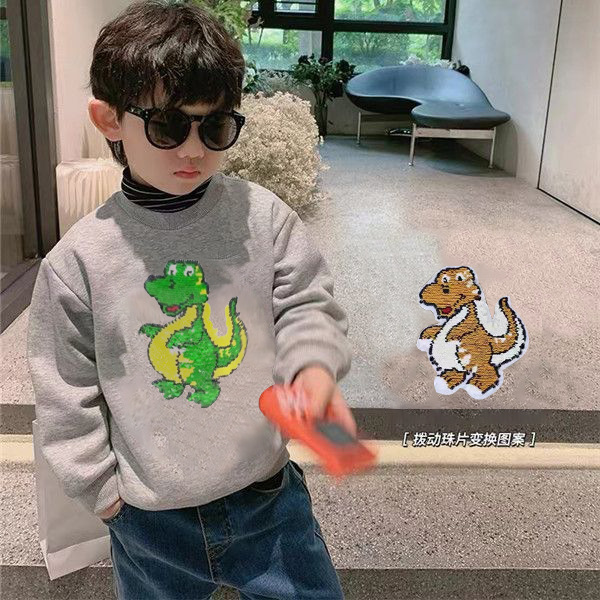 소년 스팽글 색상 변경 공룡 가을 착용 새로운 아기 아동복 만화 서양 스타일 미드 빅 보이 한국 스타일 최고 유행스토어 가기