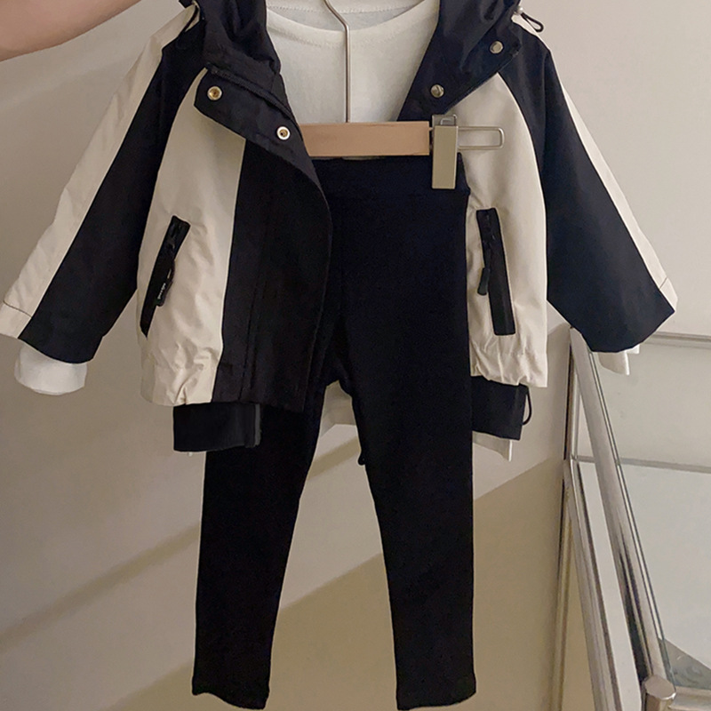 한국 가을 새로운 어린이 유행 스포츠 스타일 컬러 매칭 재킷 단색 베이스 셔츠 모든 일치 레깅스 세트 유행스토어 가기