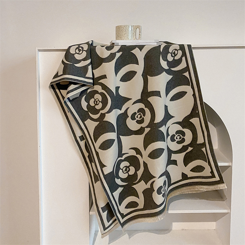 흑백 동백 스카프 겨울 폭발 레트로 패션 조커 모조 캐시미어 겨울 스카프 따뜻한 캐시미어 숄