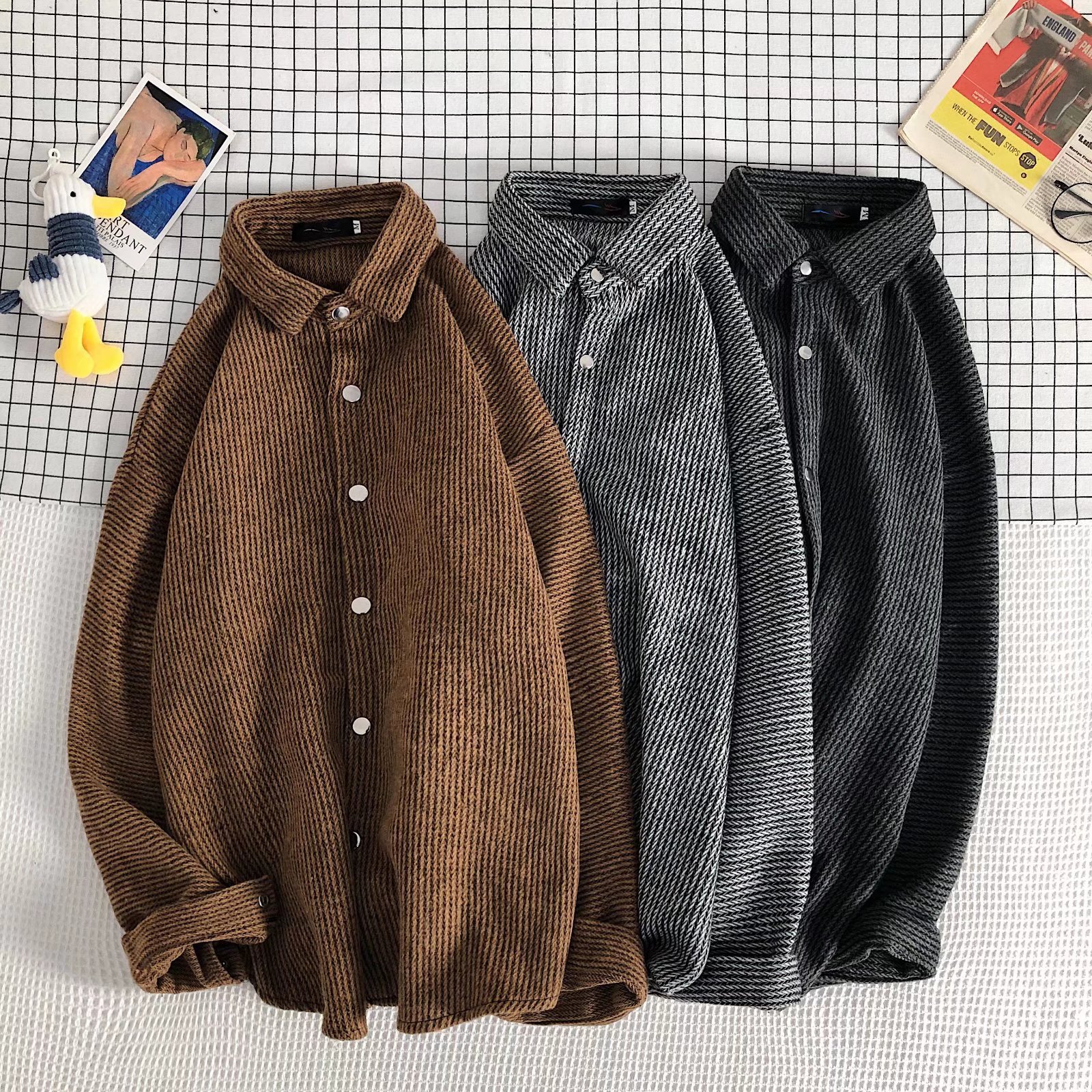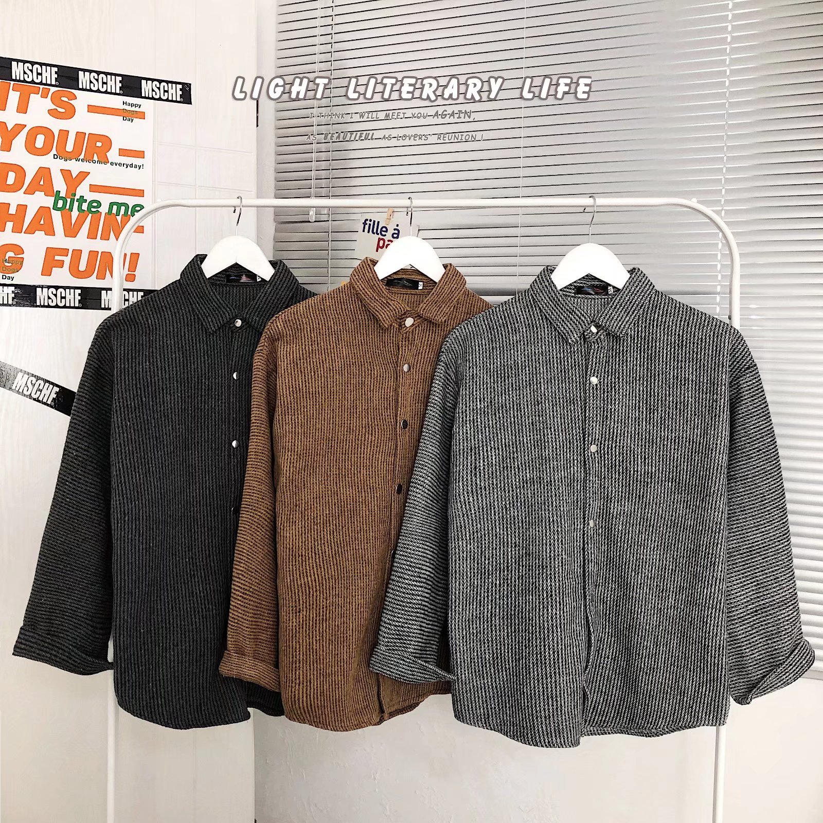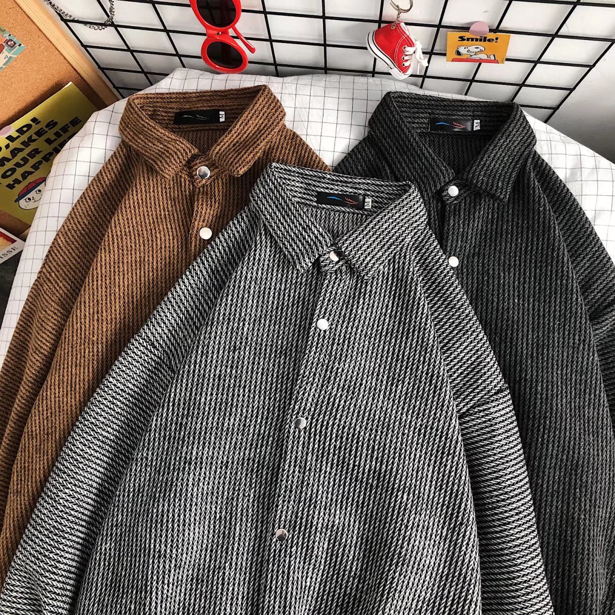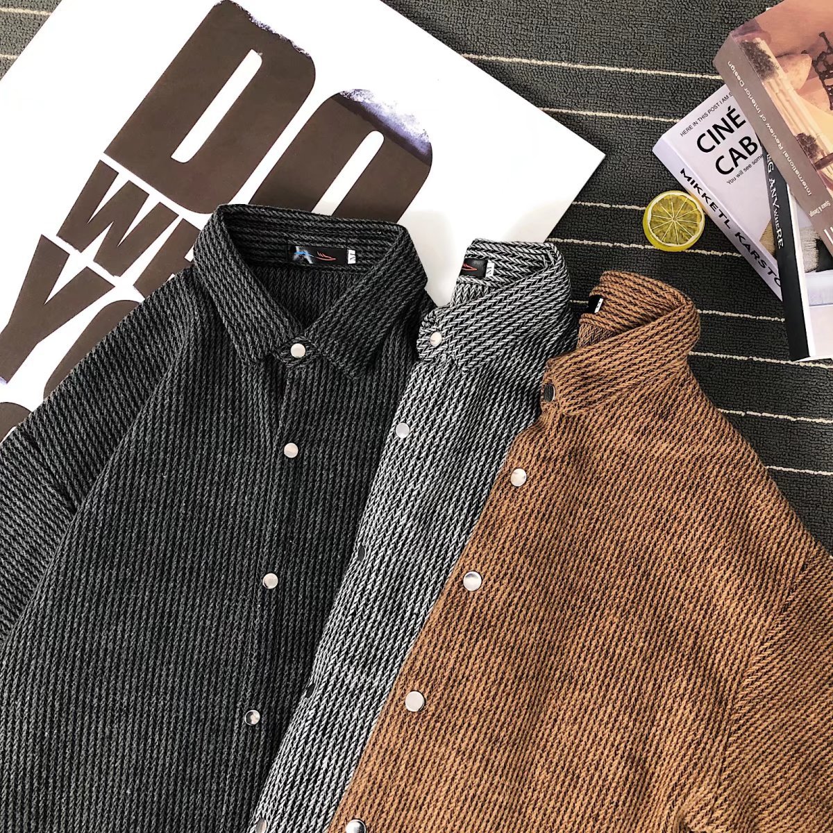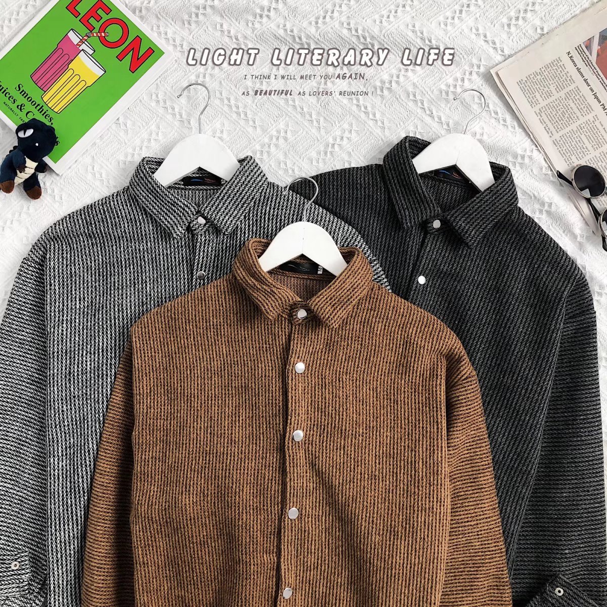 봄과 가을 일본 스타일 복고풍 느슨한 재킷 남자의 홍콩 스타일 한국 스타일 bf 하라주쿠 스타일 단색 긴 소매 모직 셔츠 재킷 남자의스토어 가기