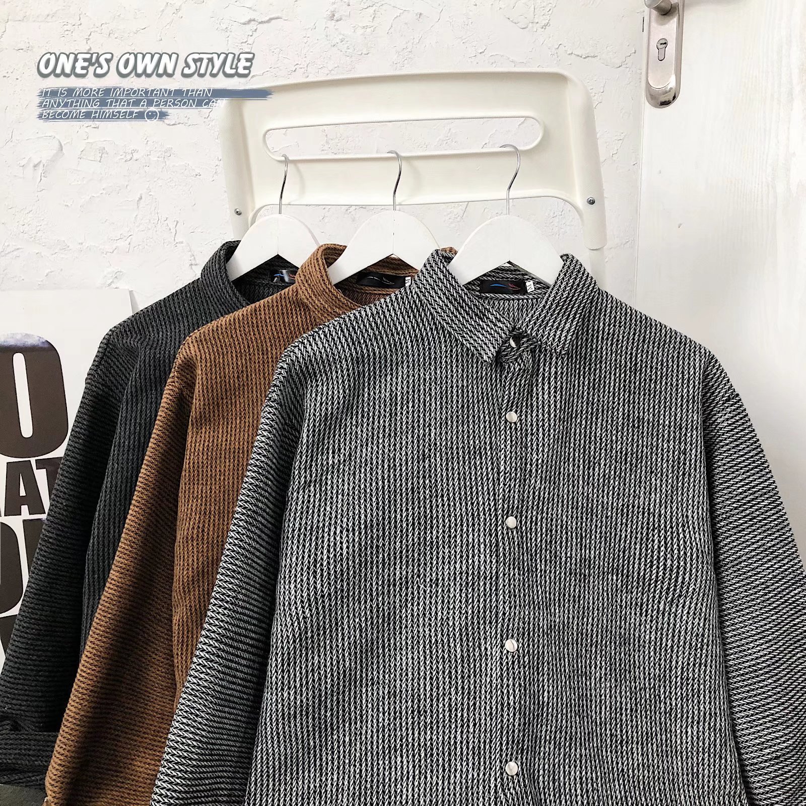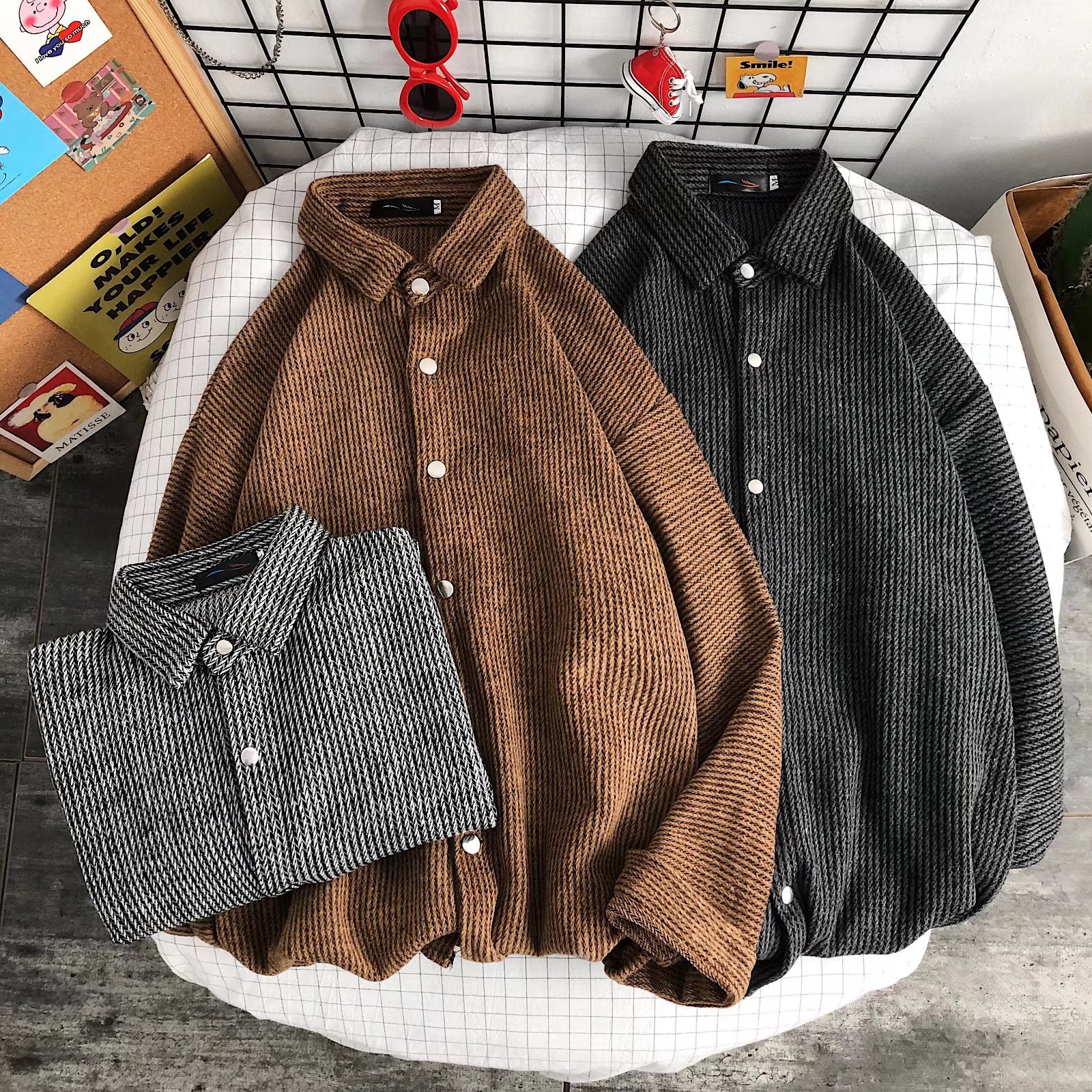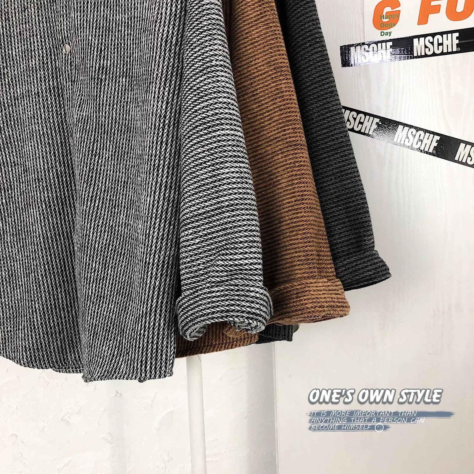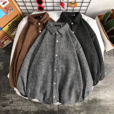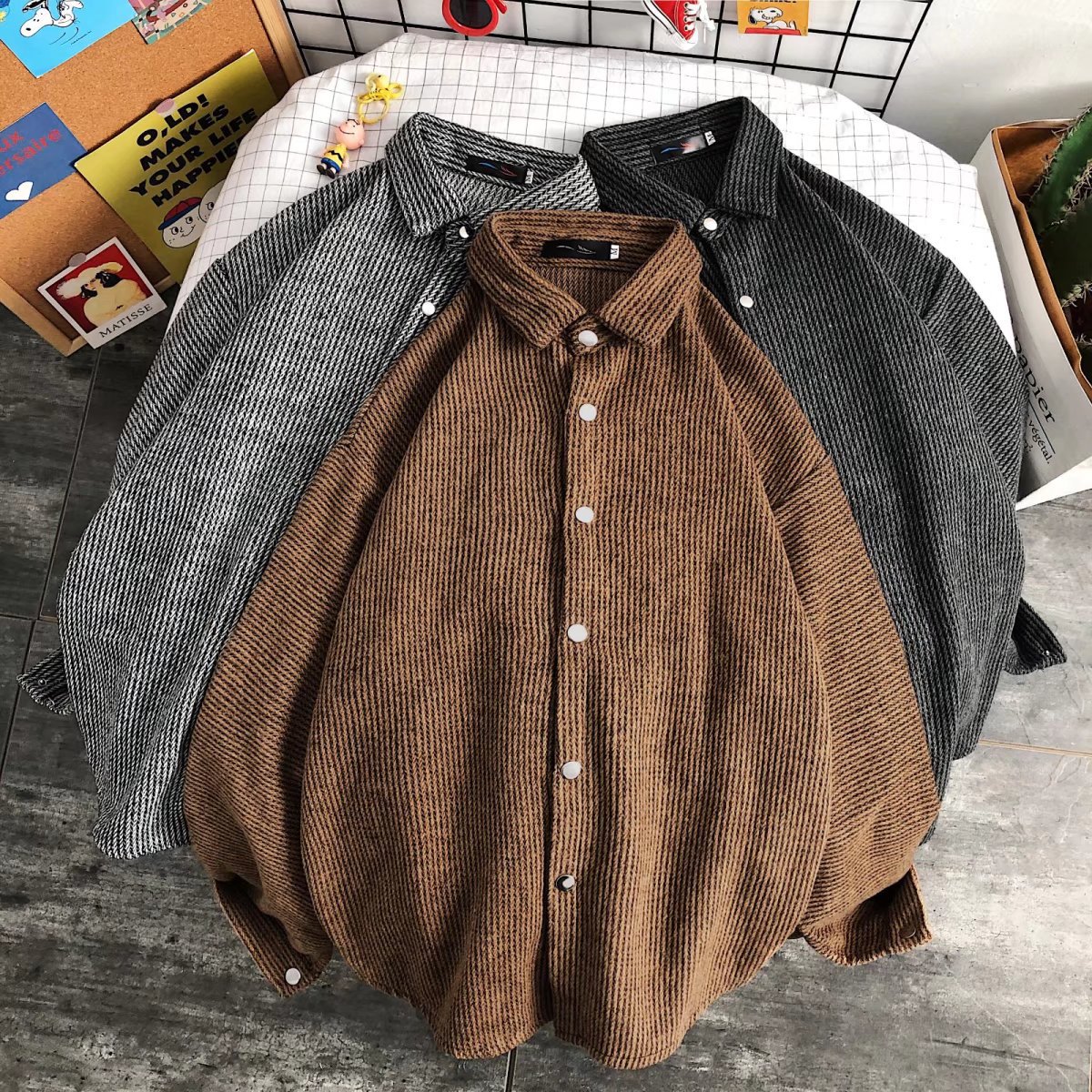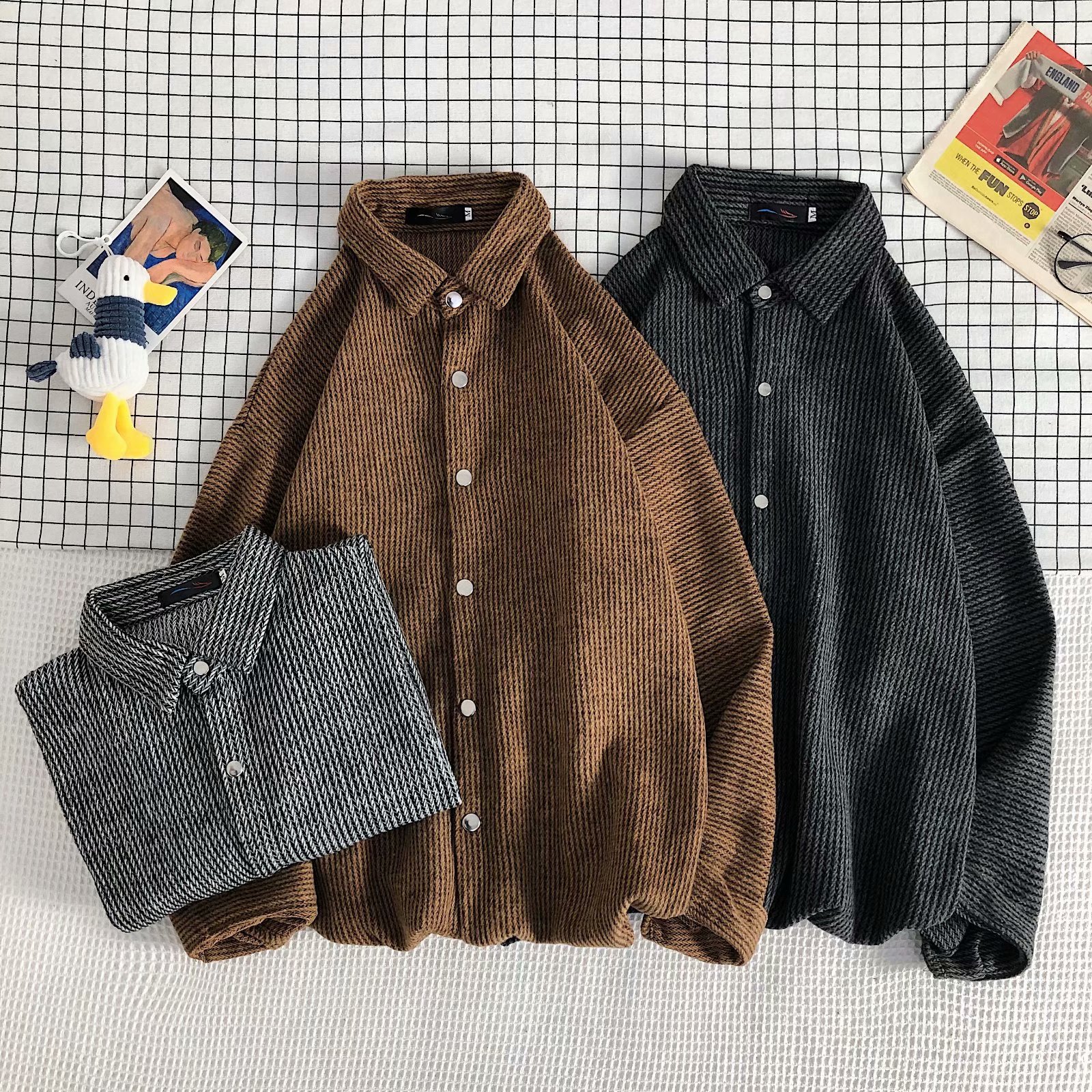 봄과 가을 일본 스타일 복고풍 느슨한 재킷 남자의 홍콩 스타일 한국 스타일 bf 하라주쿠 스타일 단색 긴 소매 모직 셔츠 재킷 남자의스토어 가기