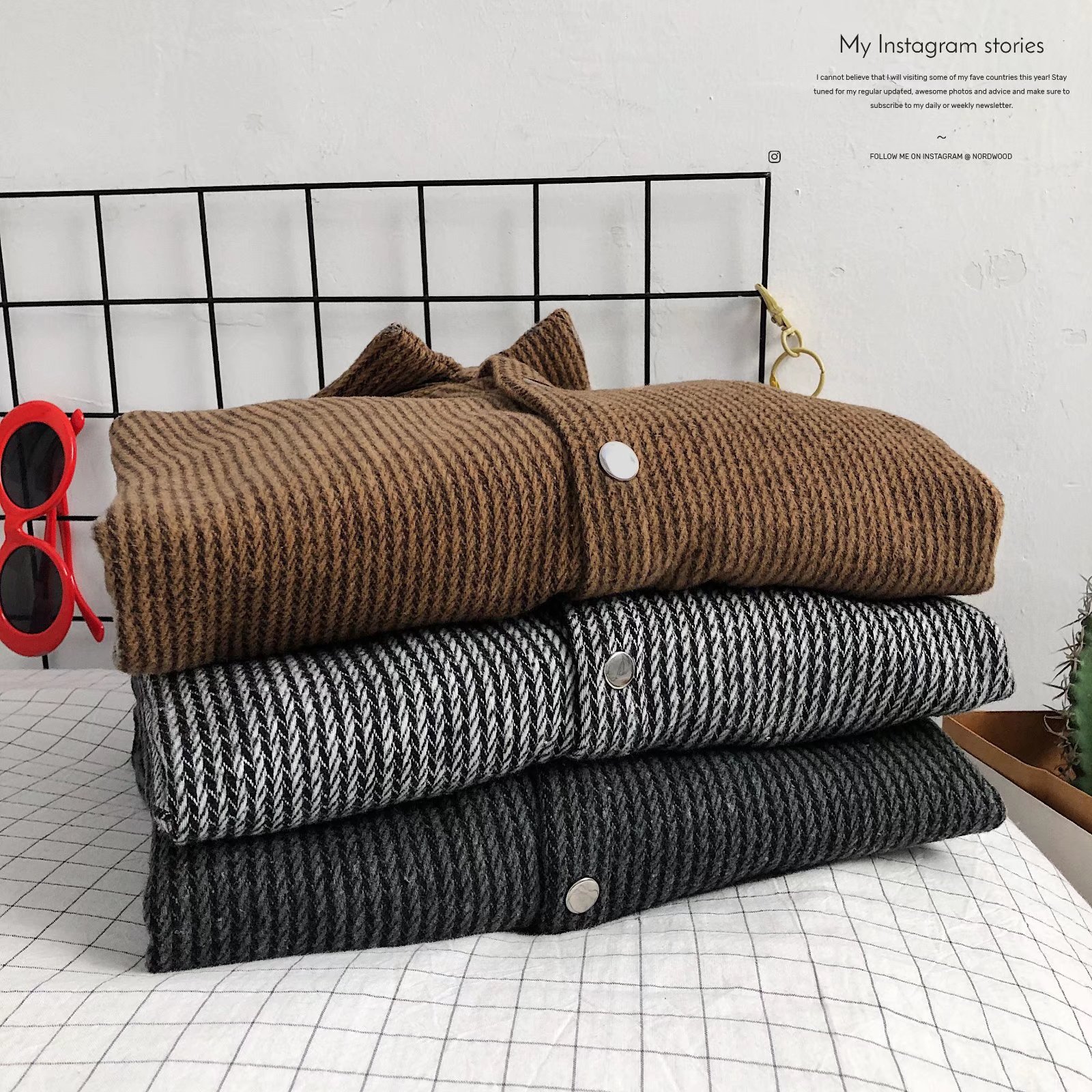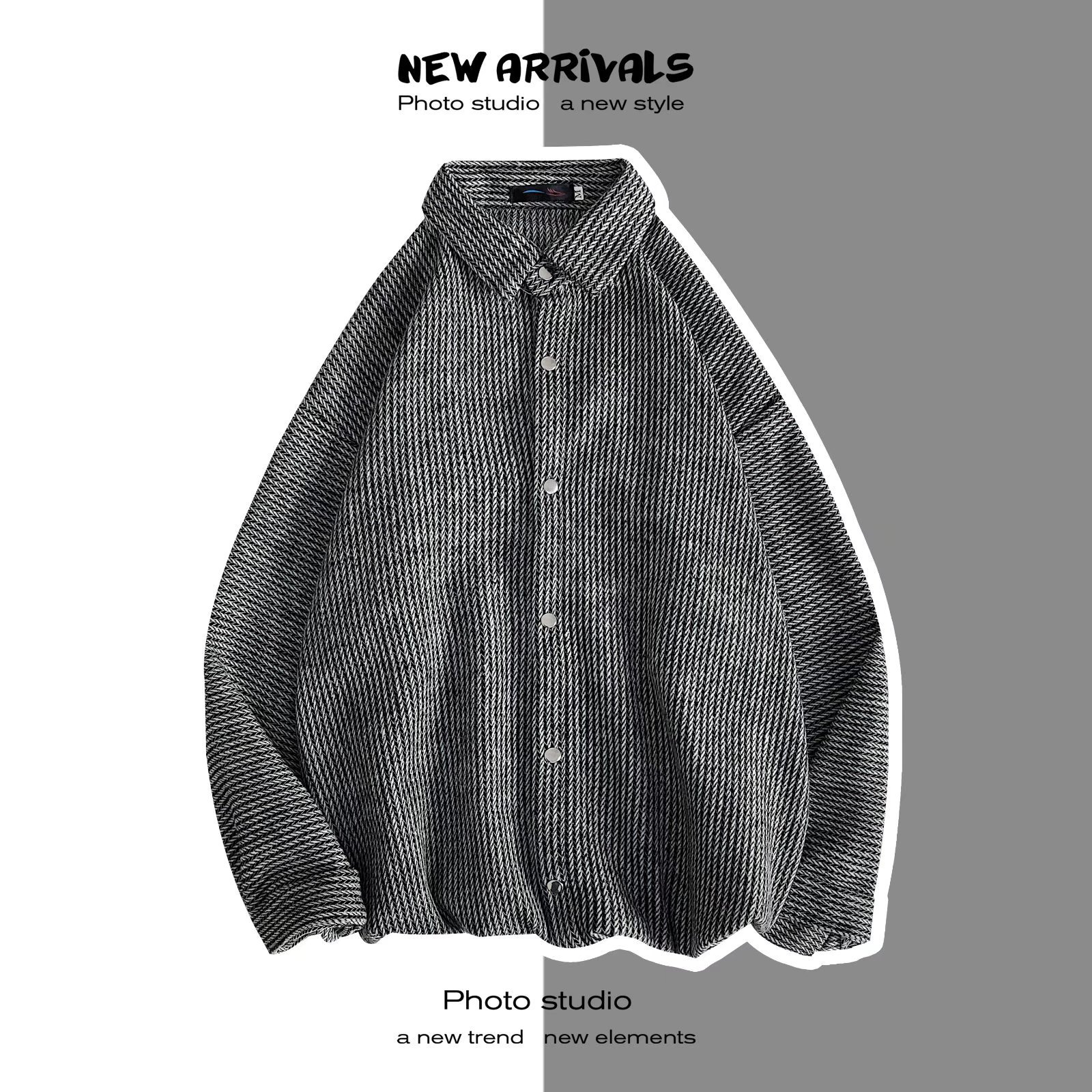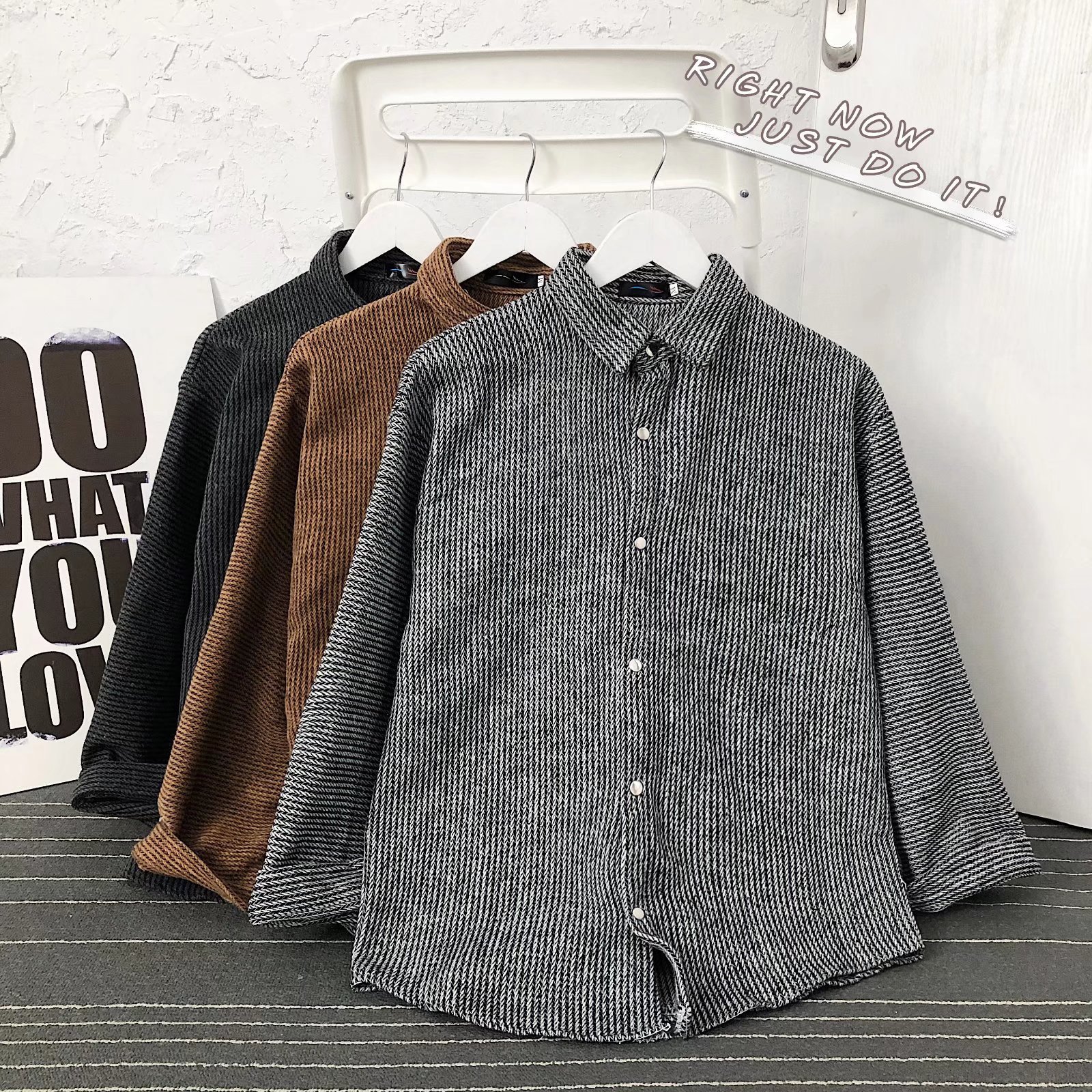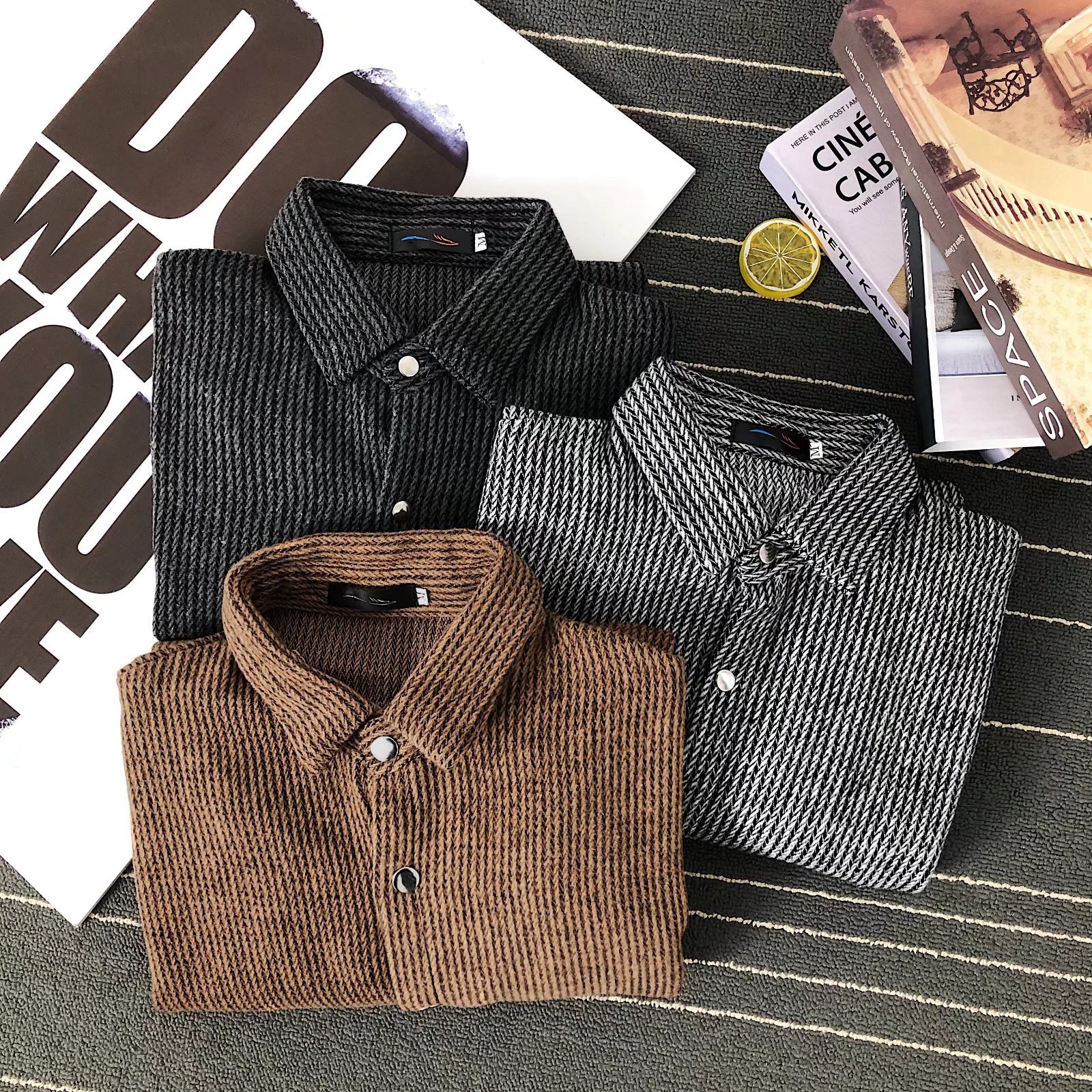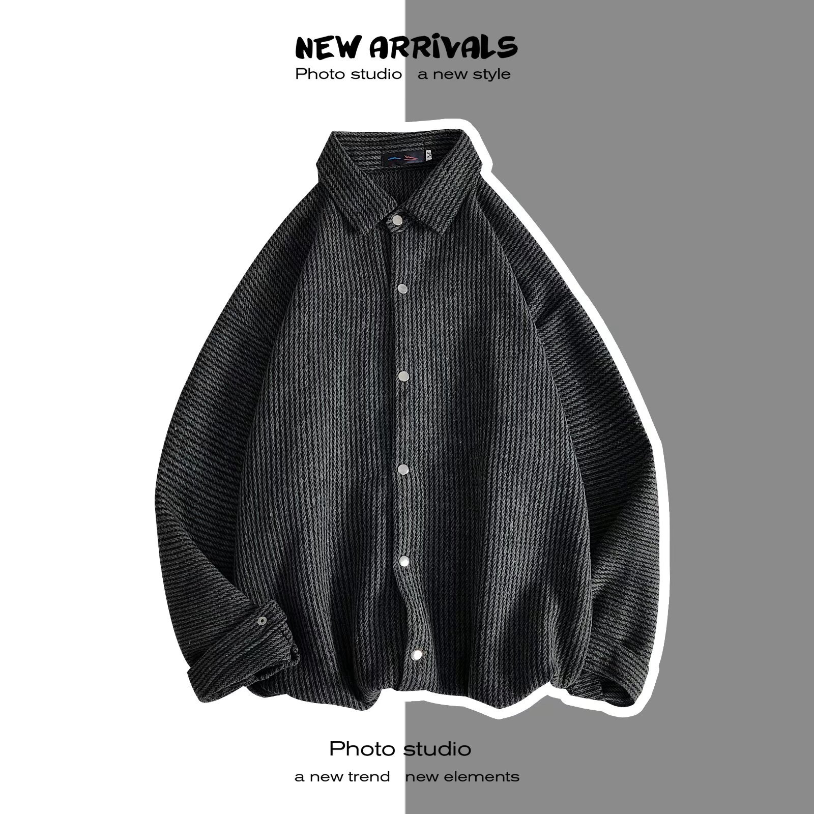 봄과 가을 일본 스타일 복고풍 느슨한 재킷 남자의 홍콩 스타일 한국 스타일 bf 하라주쿠 스타일 단색 긴 소매 모직 셔츠 재킷 남자의스토어 가기
