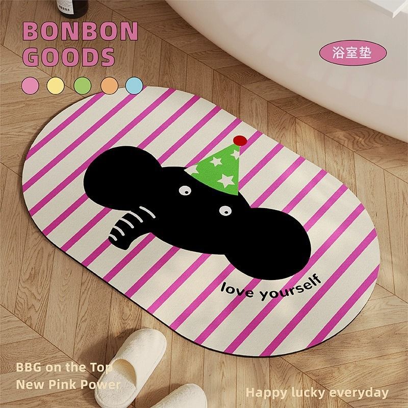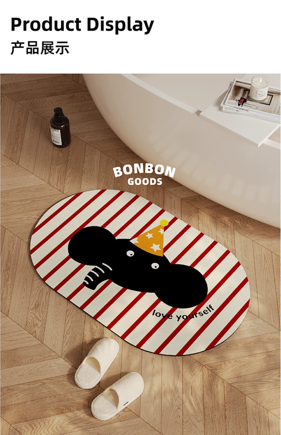 만화 귀여운 코끼리 바닥 매트 욕실 물 흡수성 속건 발 매트 욕실 미끄럼 방지 내마모성 규조 진흙 바닥 매트