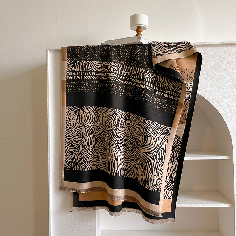 절묘한 얼룩말 패턴 흑백 스카프 여성의 겨울 한국 스타일 패션 모든 매치 타이거 가죽 패턴 숄 캐주얼 스카프 따뜻한 목