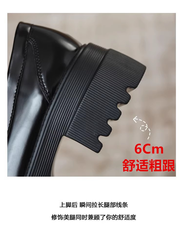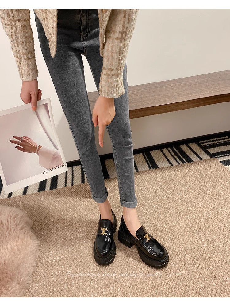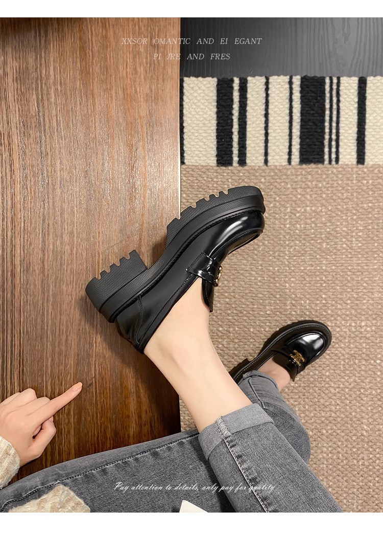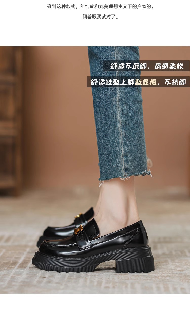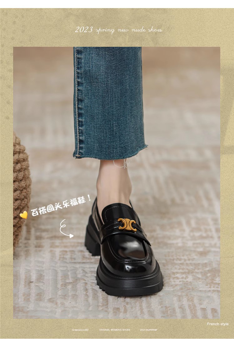 Arc de Triomphe 두꺼운 밑창 로퍼 여성용 영국식 소형 가죽 신발 두꺼운 굽 높이 증가 신발 블랙 슬립온 가죽 싱글 슈즈