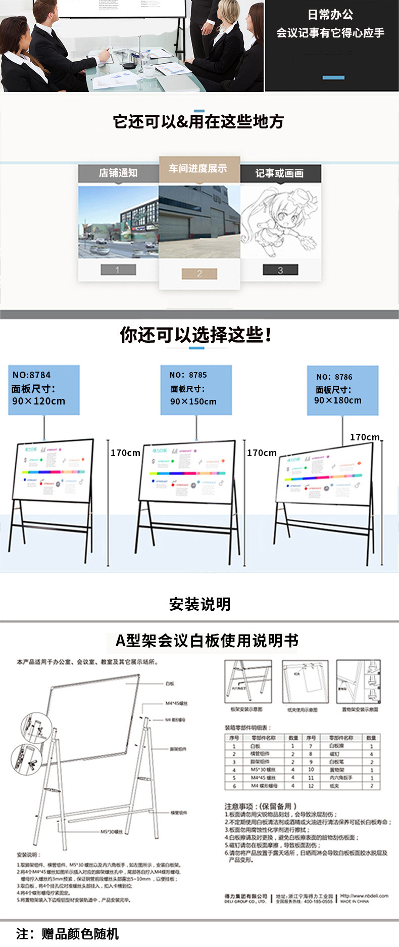 델리 8786 브래킷 화이트 보드 180 * 90cmA 프레임 프레임 마그네틱 사무실 회의 화이트 보드 브래킷