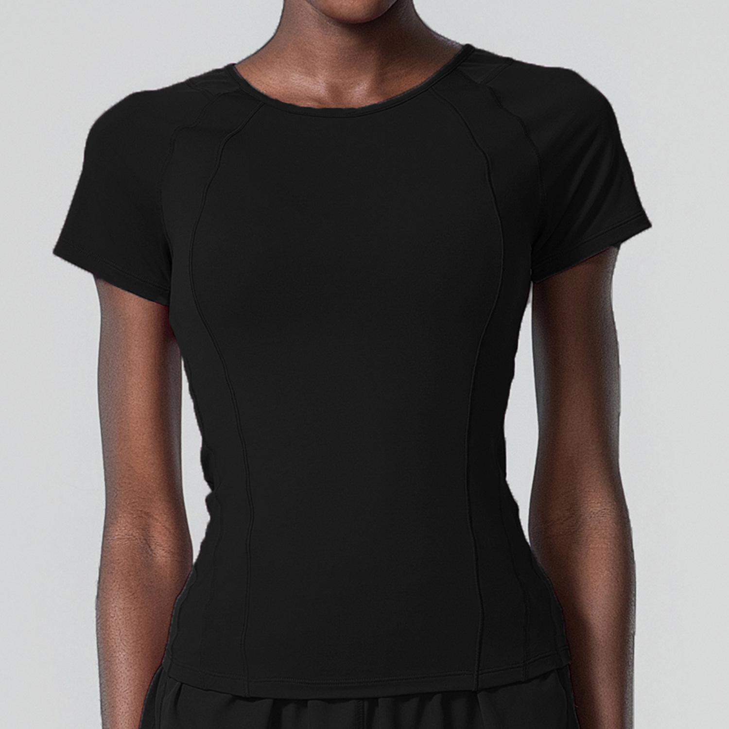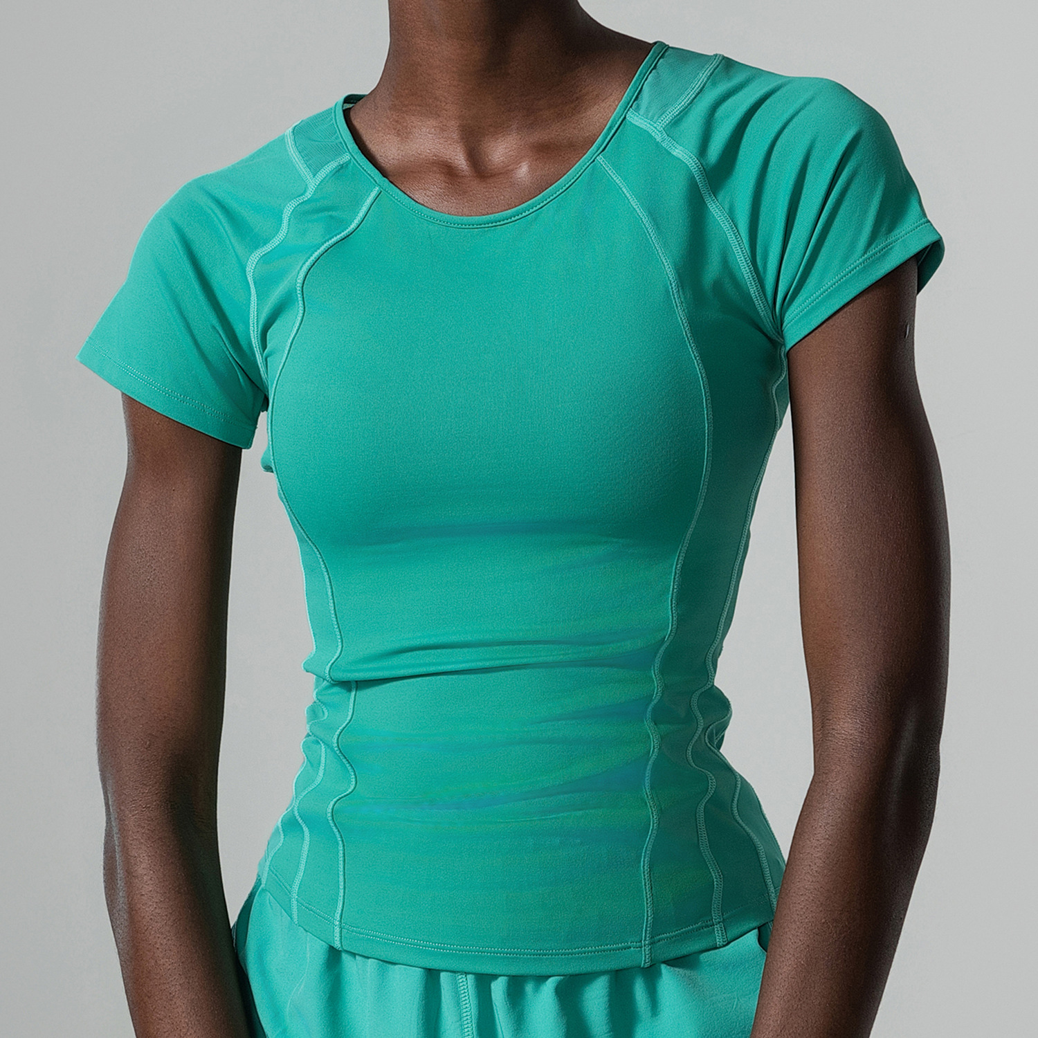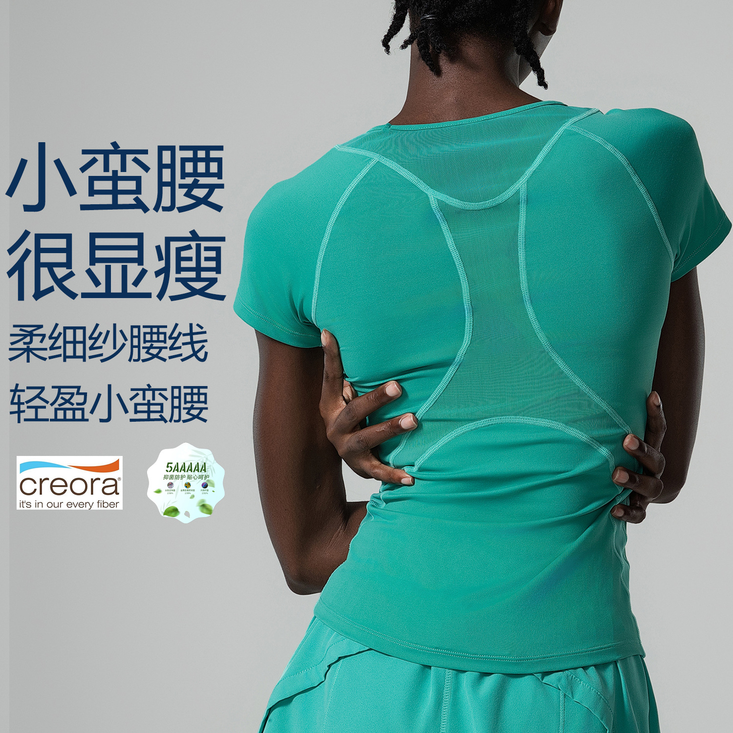 冰皮紧身运动上衣女 跨境小蛮腰短袖瑜伽服上衣 修身速干健身T恤