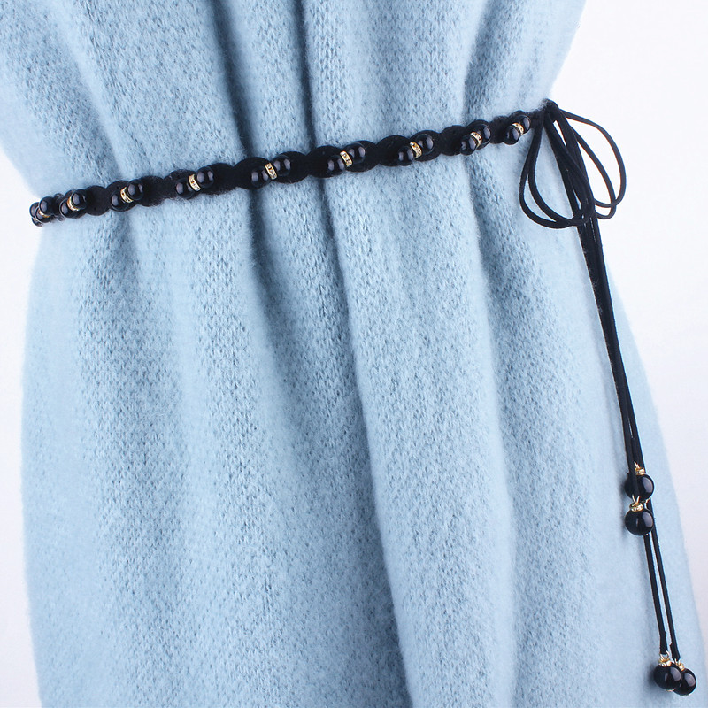 얇은 벨트 여성용 장식 원피스 심플 모든 경기 새로운 도착 벨트 허리 로프 스웨터 매듭 니트 원피스스토어 가기