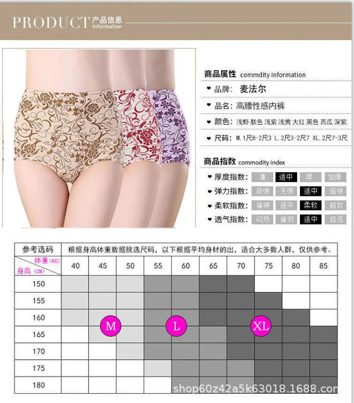 하이 웨이스트 속옷 여성용 면 가랑이 편안한 통기성 우유 실크 중년 플러스 사이즈 삼각형 반바지스토어 가기