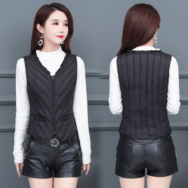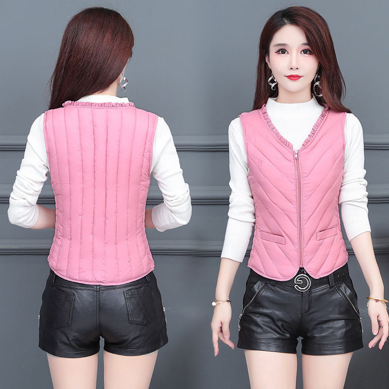 2023 라이트 다운 코튼 조끼 여성용 짧은 새로운 바디핏 조끼 한국 스타일 내부 탱크 가을과 겨울 다운 코튼 조끼